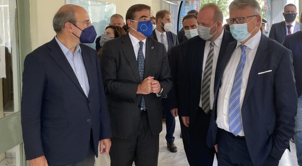 Τη 2η Επαγγελματική Σχολή (ΕΠΑ.Σ..) Μαθητείας του ΟΑΕΔ στη Θεσσαλονίκη, την μεγαλύτερη από τις 50 Σχολές του Οργανισμού που λειτουργούν πανελλαδικά, επισκέφθηκε χθες ο υπουργός Εργασίας και Κοινωνικών Υποθέσεων Κωστής Χατζηδάκης, o Aντιπρόεδρος της Ευρωπαϊκής Επιτροπής Μαργαρίτης Σχοινάς και ο Επίτροπος Εργασίας και Κοινωνικών Δικαιωμάτων Nicolas Schmit (στο χαρτοφυλάκιο του οποίου βρίσκονται και τα θέματα δια βίου μάθησης), συνοδευόμενοι από τον Διοικητή του ΟΑΕΔ Σπύρο Πρωτοψάλτη.