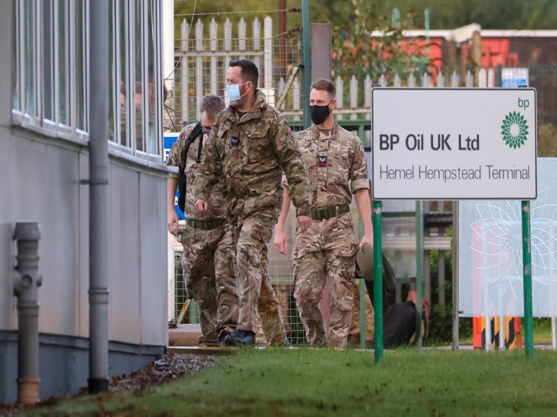 Βρετανοί στρατιώτες με στολή και εξαρτύσεις μάχης έφθασαν σήμερα σε ένα διυλιστήριο της BP κατ’ εντολή της κυβέρνησης στον στρατό να βοηθήσει στην διαδικασία παράδοσης καυσίμων ώστε να ξεπεραστεί η τεράστια έλλειψη οδηγών βυτιοφόρων που έχει δημιουργήσει σοβαρά προβλήματα στην τροφοδοσία της χώρας σε καύσιμα.