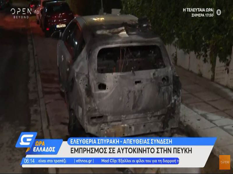 Στόχος εμπρηστών έγινε το αυτοκίνητο της Ελένης Ζαρούλια, της συζύγου του επικεφαλής της Χρυσής Αυγής, Νίκου Μιχαλολιάκου.