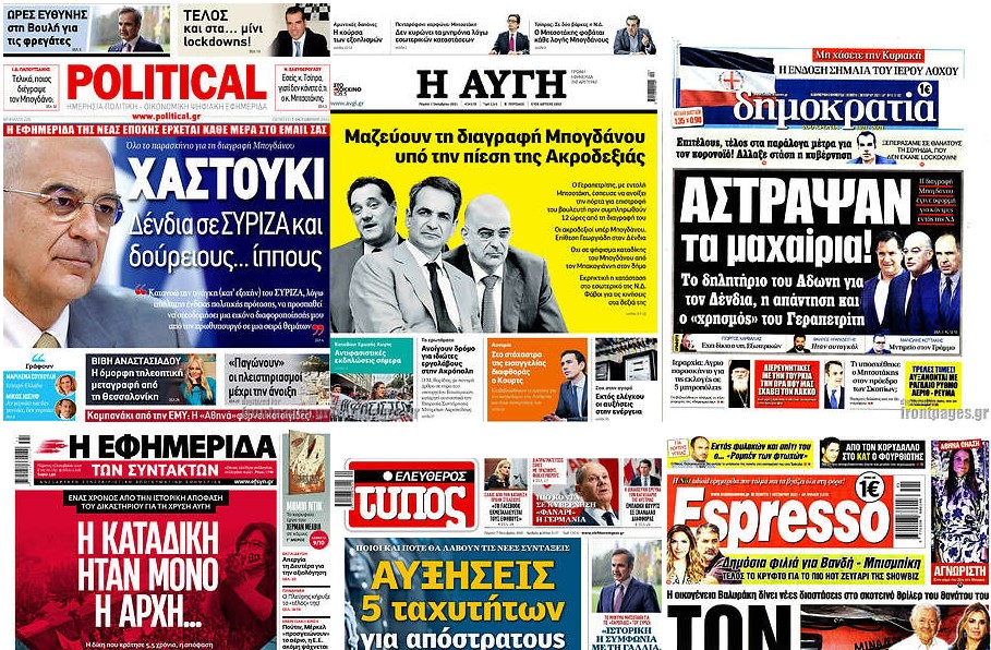 Κοινοποίηση Facebook Twitter LinkedIn Pinterest Email Copy Link Δείτε τα πρωτοσέλιδα των σημερινών εφημερίδων Πρωτοσέλιδα