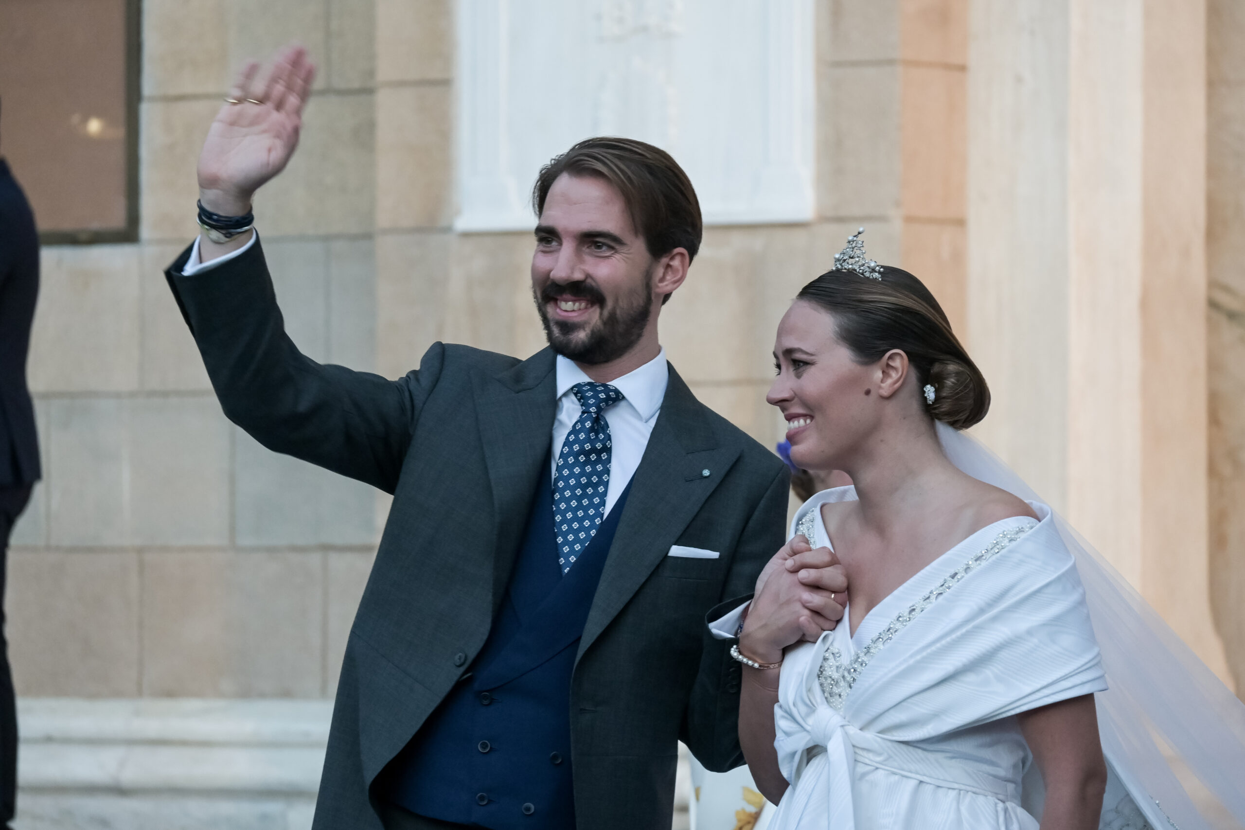 Ο Φίλιππος έφτασε στη Μητρόπολη συνοδευόμενος από την μητέρα του Άννα Μαρία, ενώ στον ναό κατέφθασε και ο τέως βασιλιάς Κωνσταντίνος.