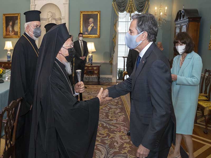 Σύμφωνα με την ανακοίνωση του Στέιτ Ντιπάρτμεντ, οι δύο πλευρές συζήτησαν τη «δέσμευση των ΗΠΑ να υποστηρίξουν τη θρησκευτική ελευθερία σε όλο τον κόσμο και τις ευκαιρίες συνεργασίας με την Ορθόδοξη Χριστιανική κοινότητα παγκοσμίως σε θέματα κοινού ενδιαφέροντος, καθώς επίσης και για τις θρησκευτικές μειονότητες στην Τουρκία και στην περιοχή. Συζήτησαν επίσης την επιτακτική ανάγκη για την επείγουσα αντιμετώπιση της κλιματικής κρίσης».