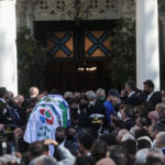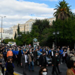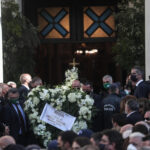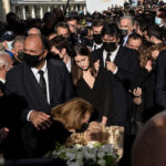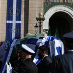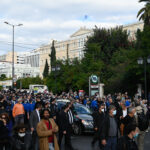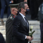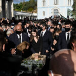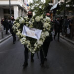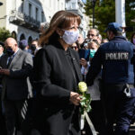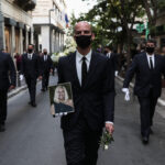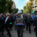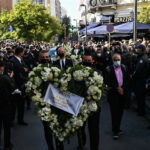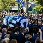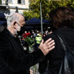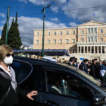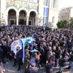 Μπροστά από τη Βουλή, στο μνημείο του Αγνώστου Στρατιώτη, η νεκρώσιμη πομπή πραγματοποίησε ολιγόλεπτη στάση.