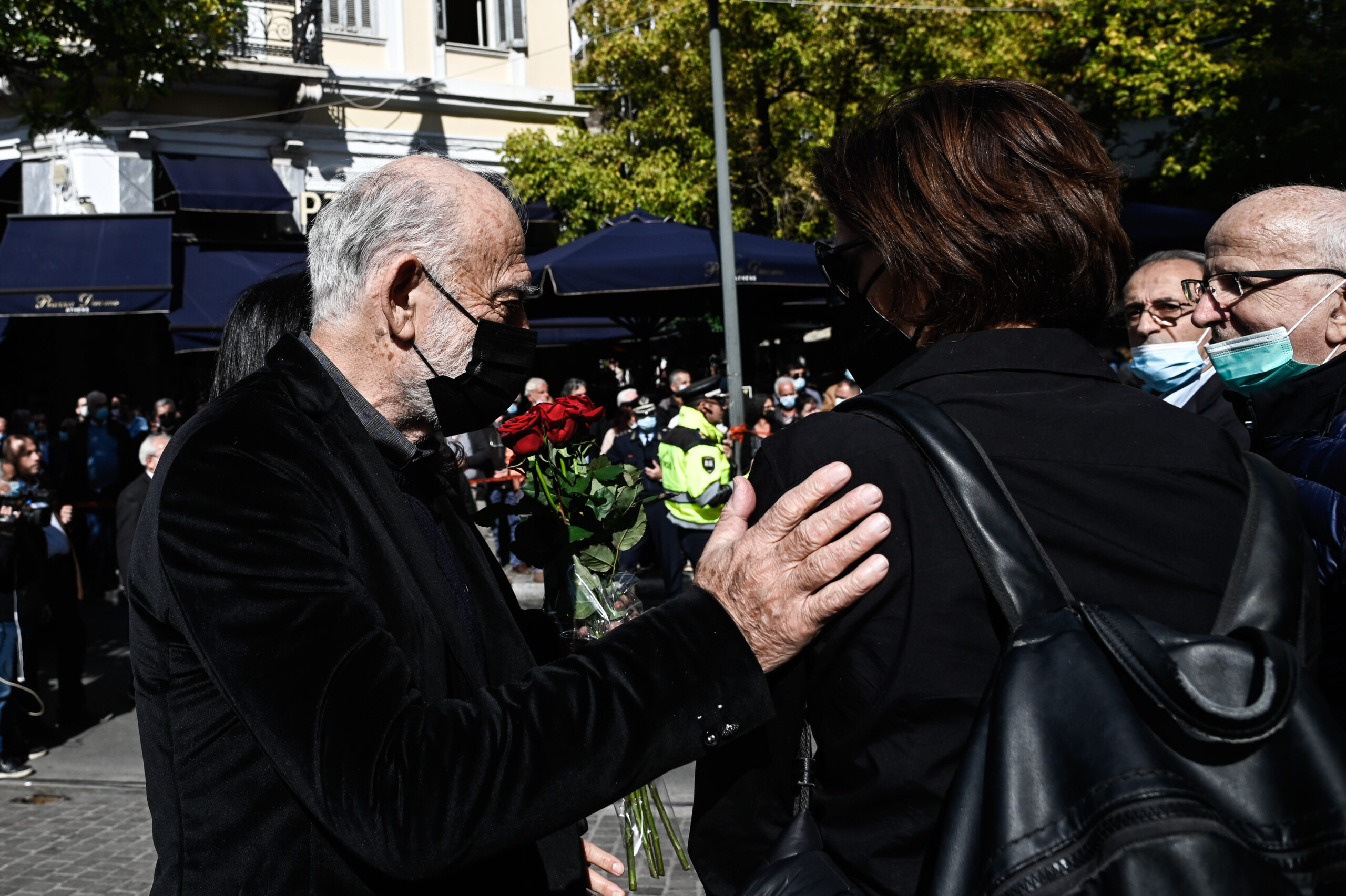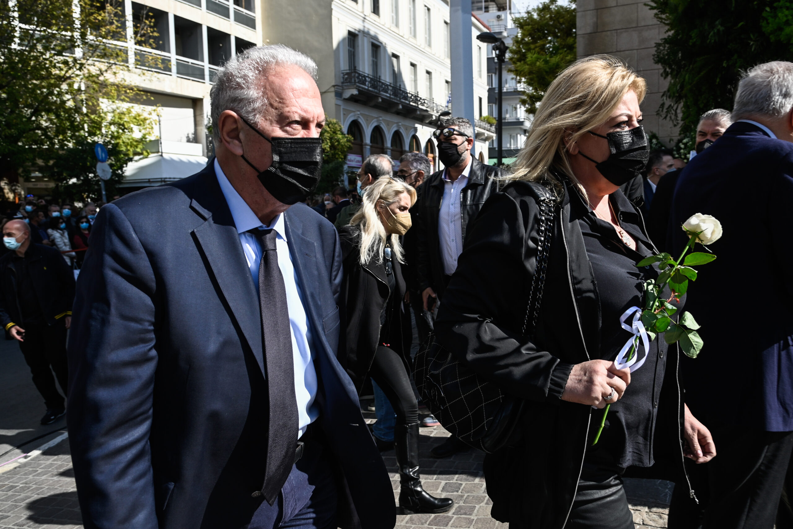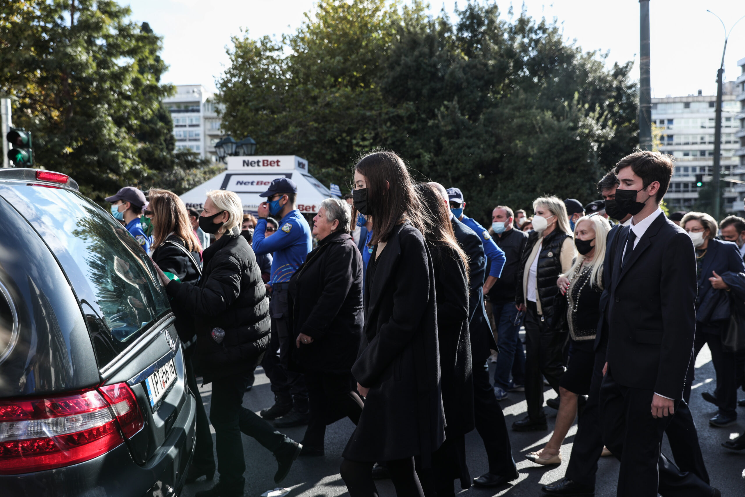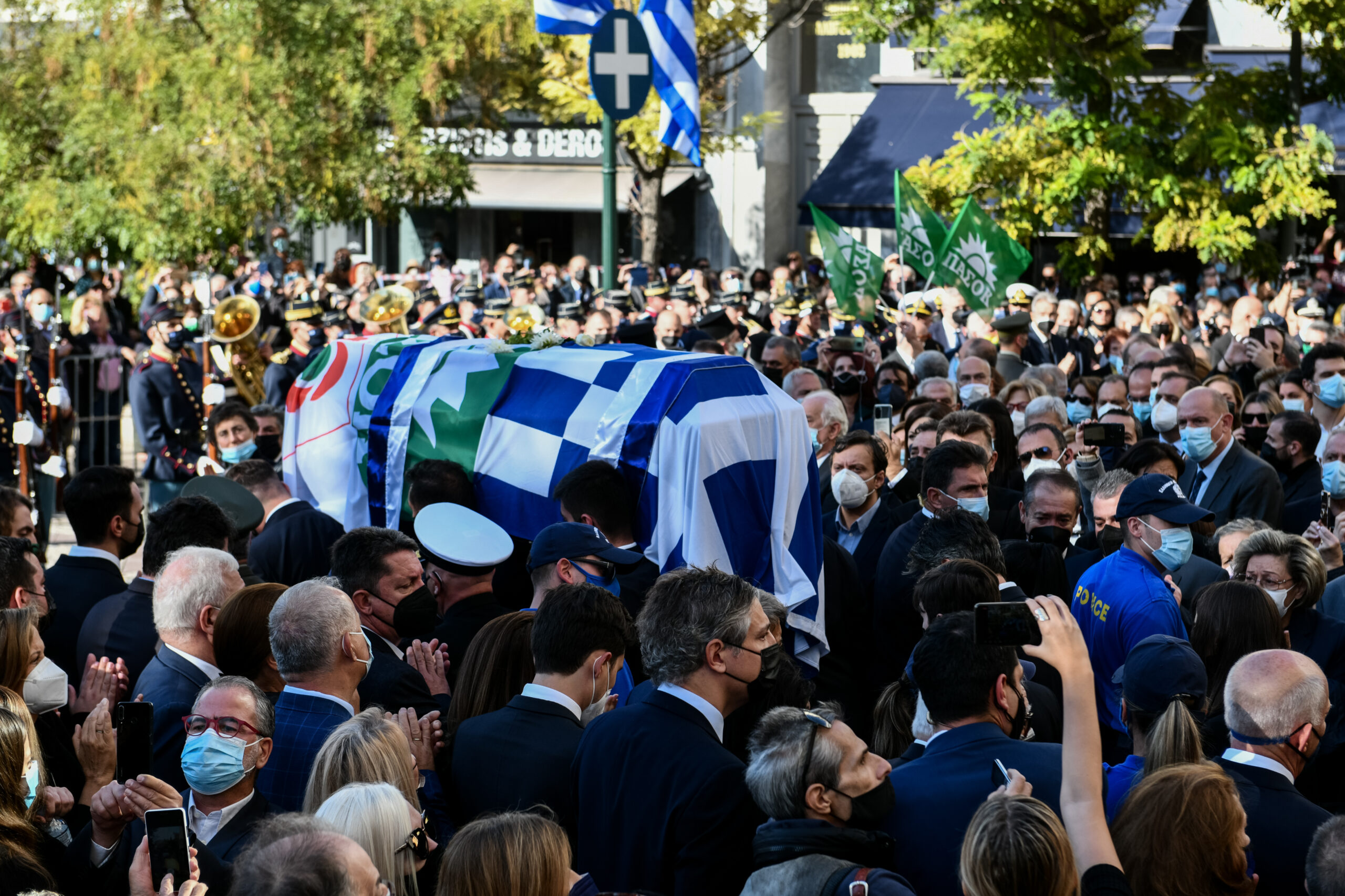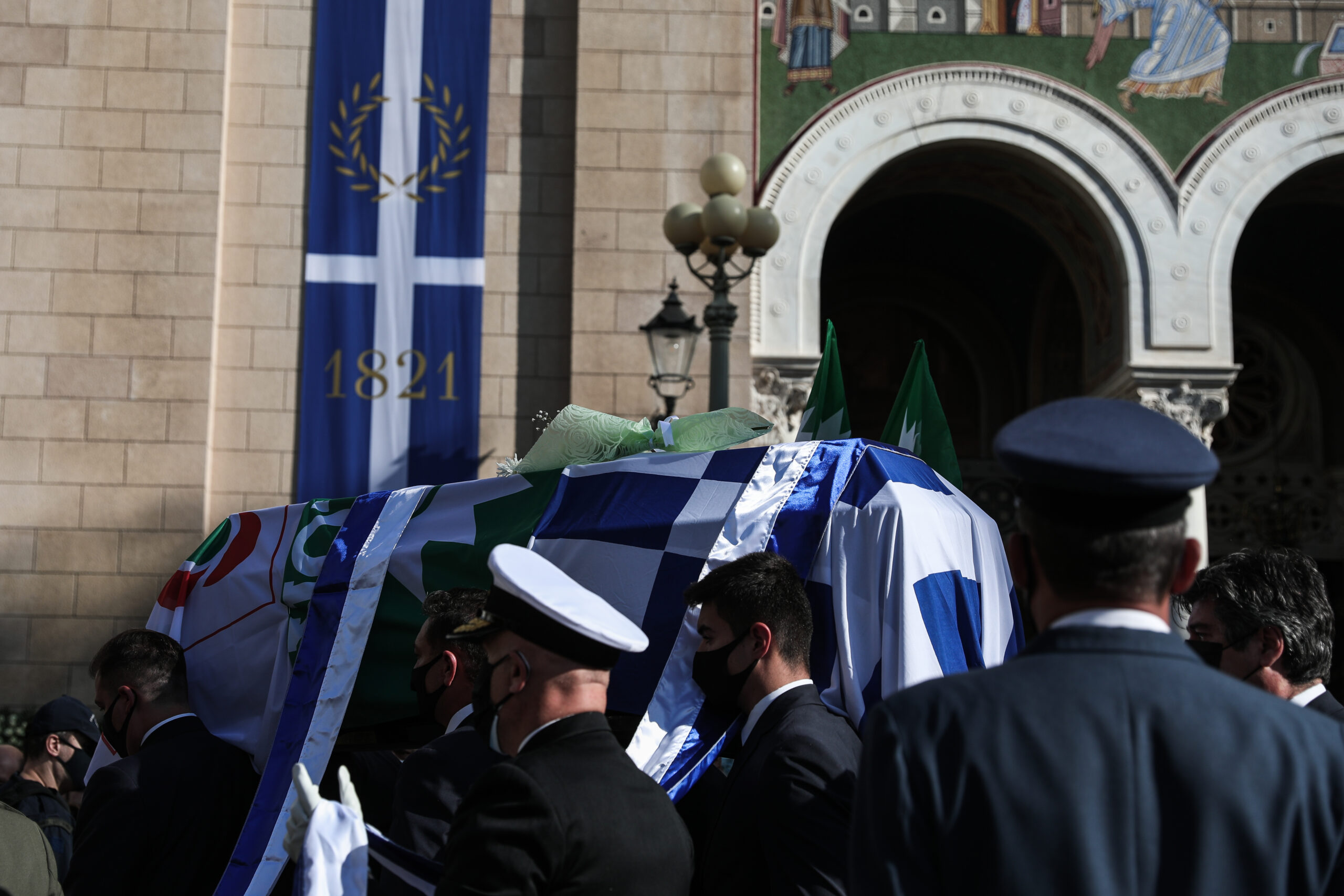 Μπροστά από τη Βουλή, στο μνημείο του Αγνώστου Στρατιώτη, η νεκρώσιμη πομπή πραγματοποίησε ολιγόλεπτη στάση.
