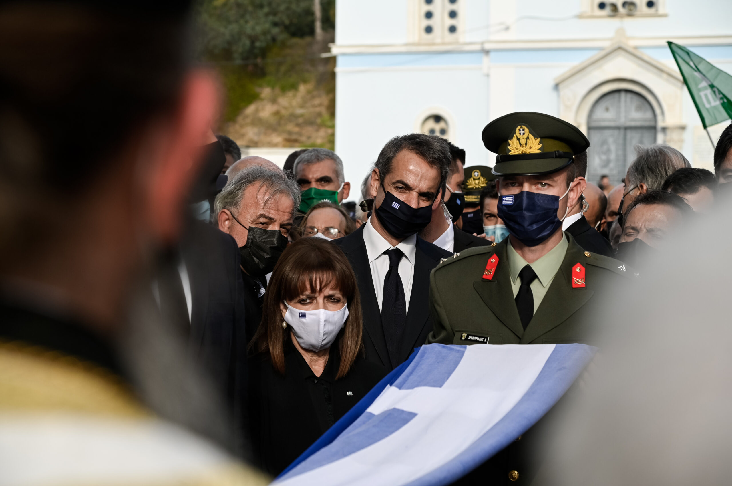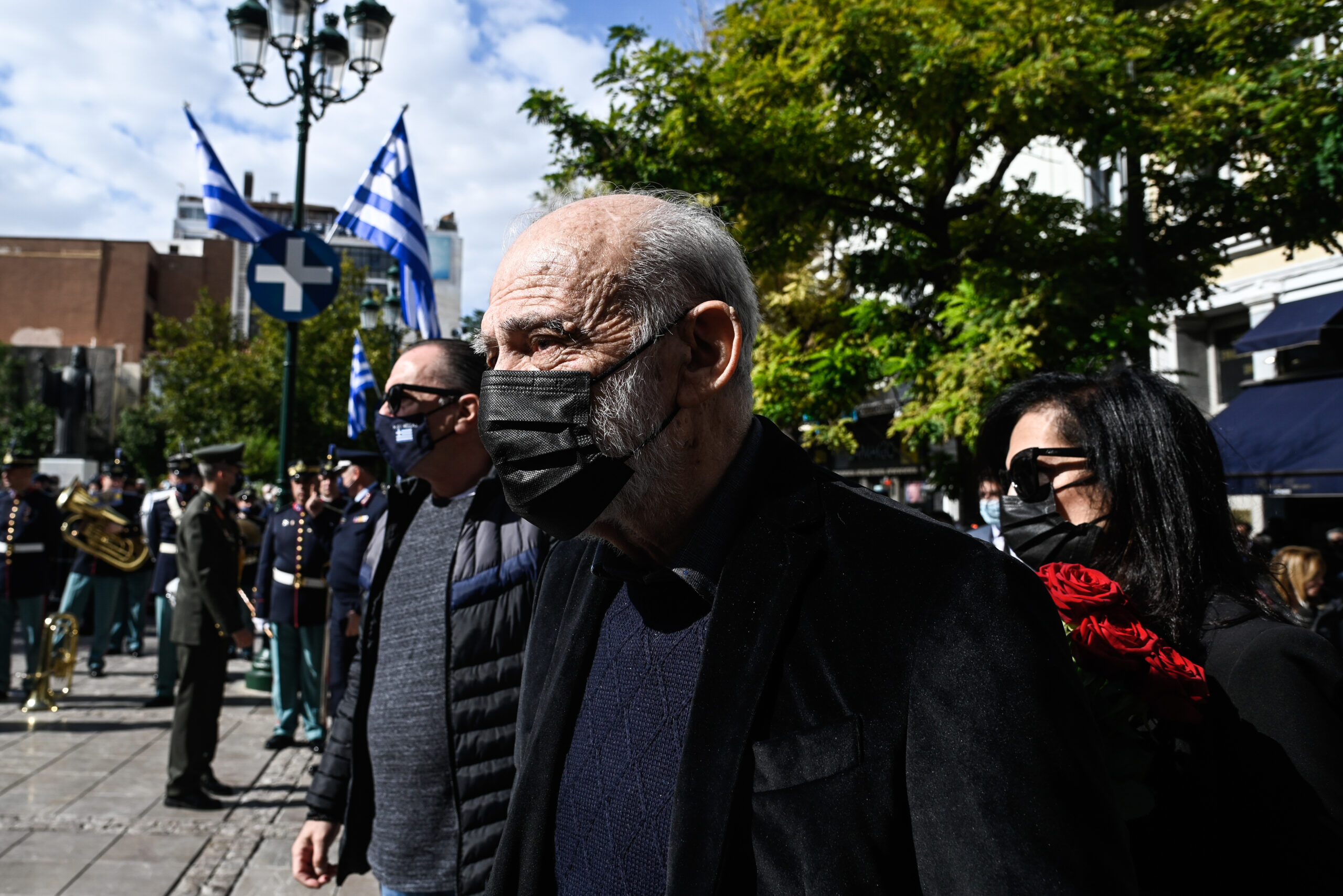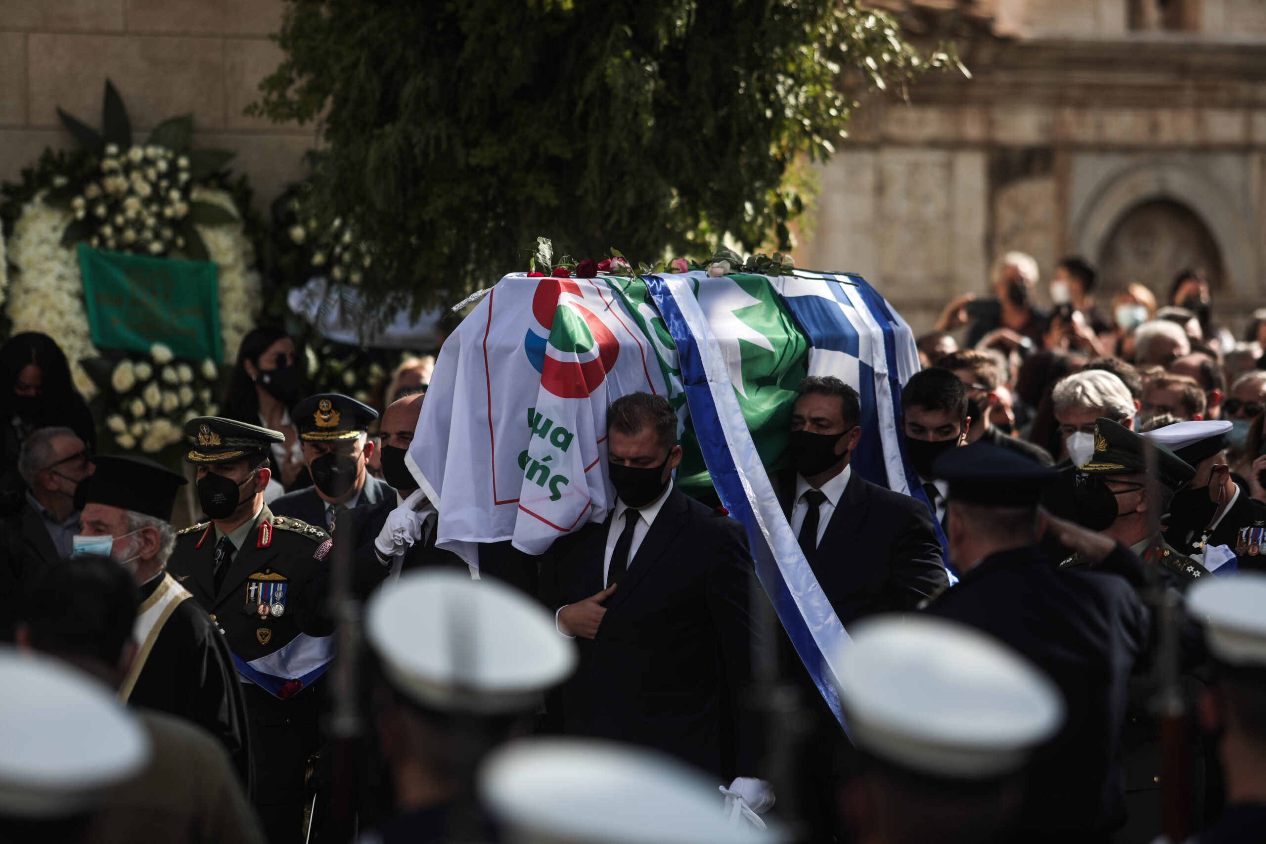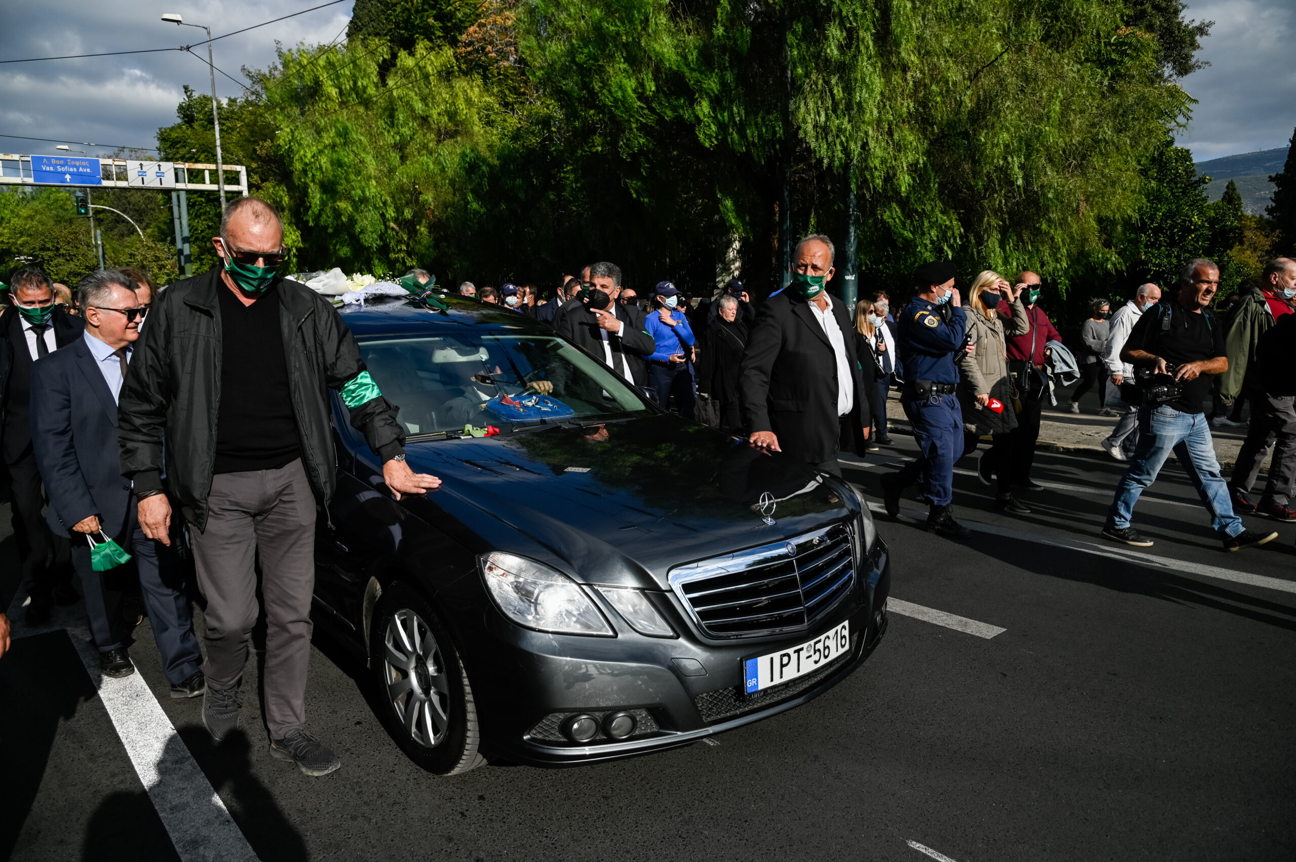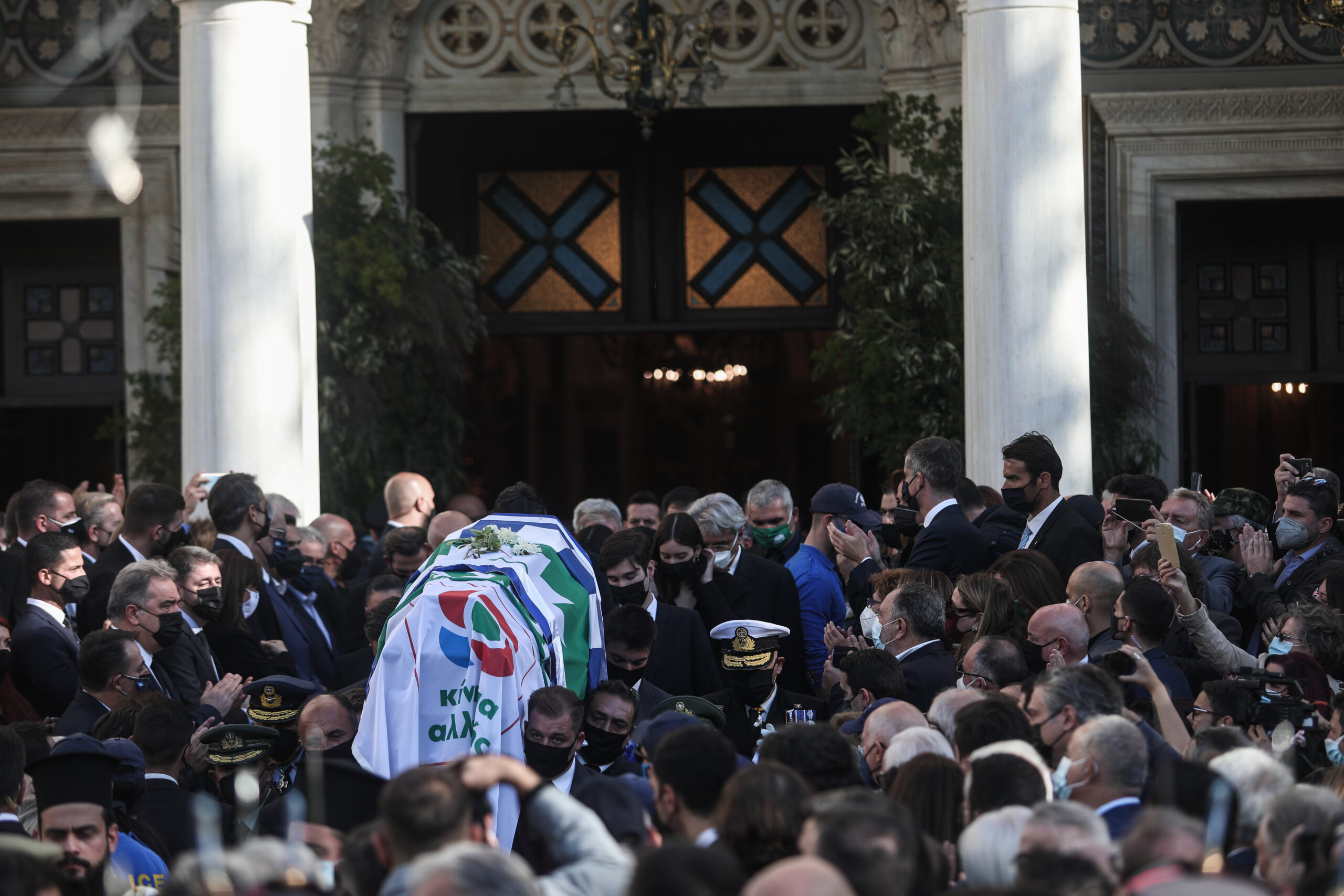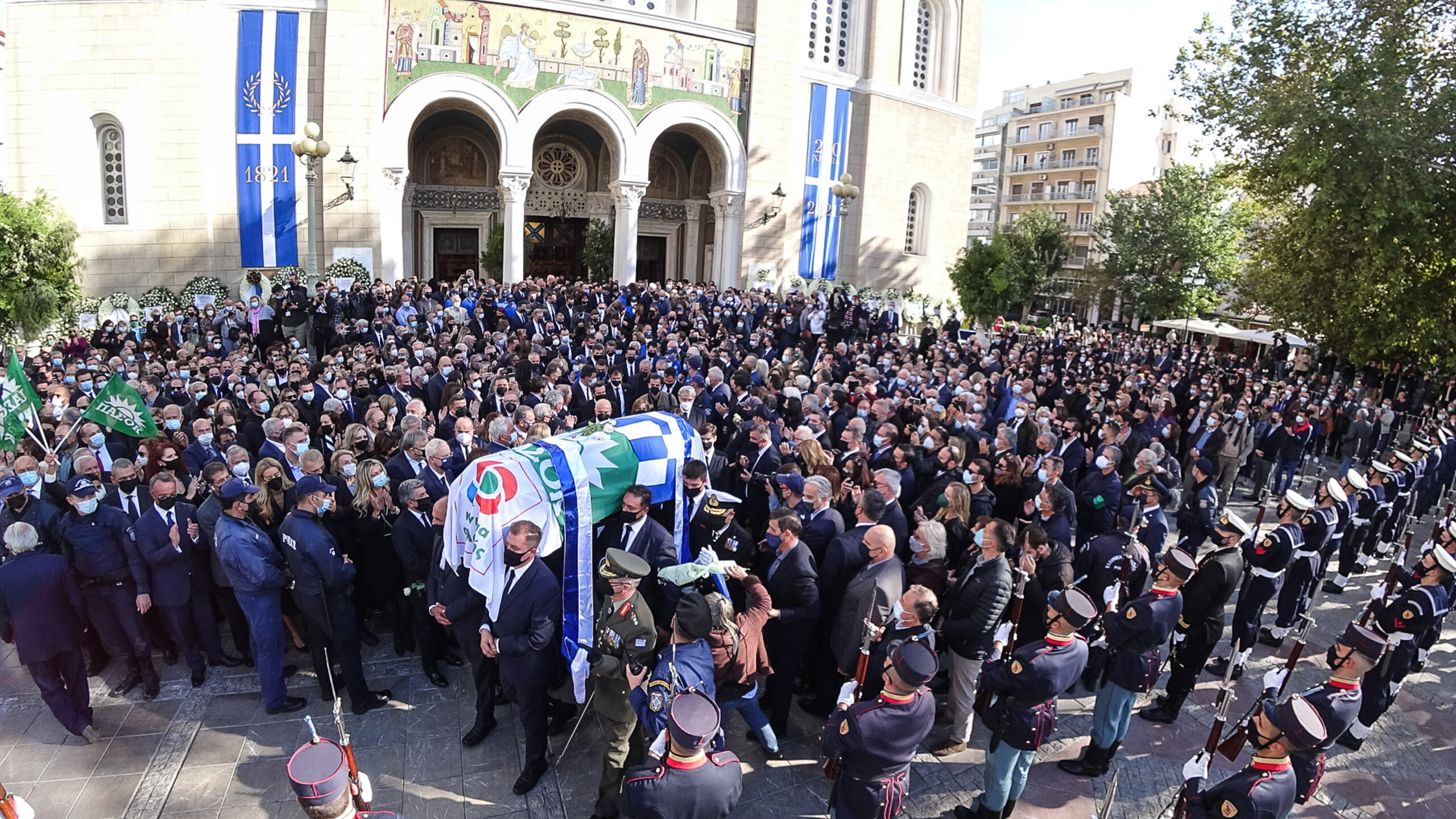 Μπροστά από τη Βουλή, στο μνημείο του Αγνώστου Στρατιώτη, η νεκρώσιμη πομπή πραγματοποίησε ολιγόλεπτη στάση.