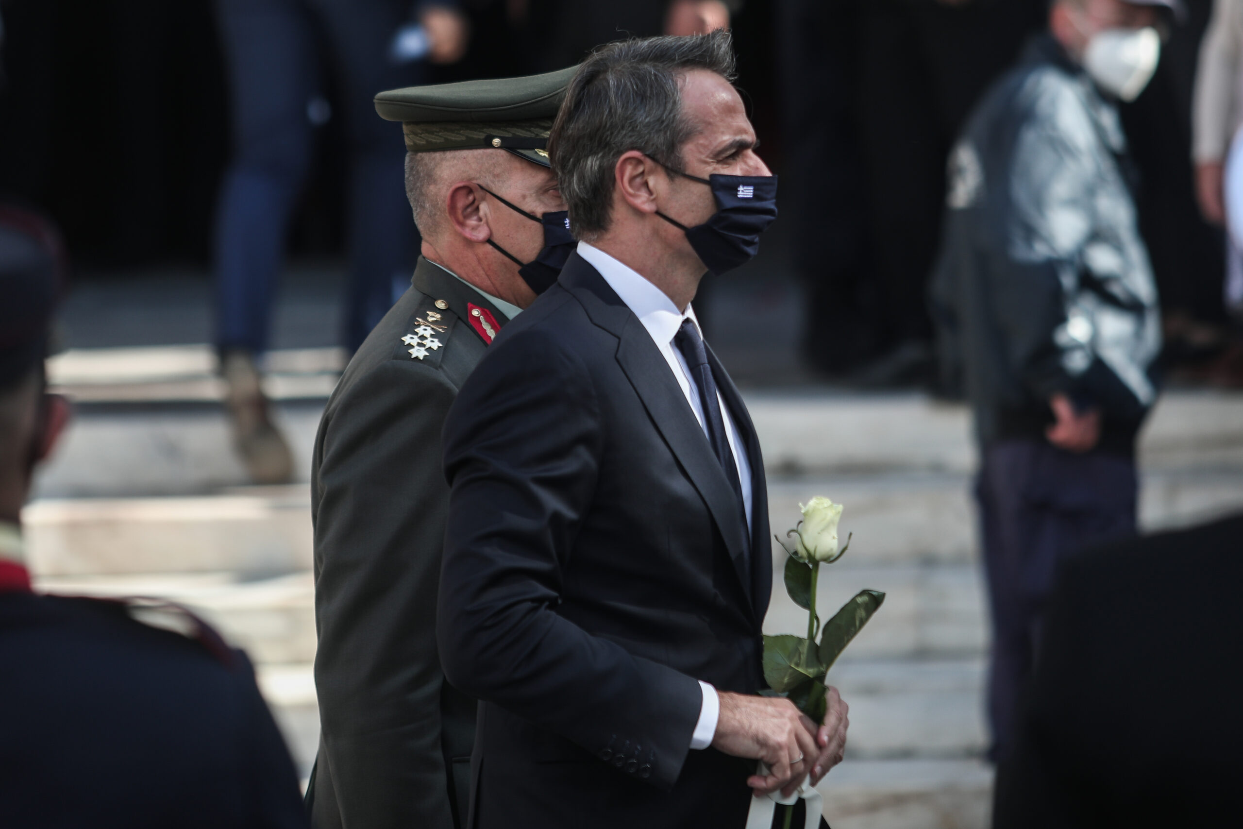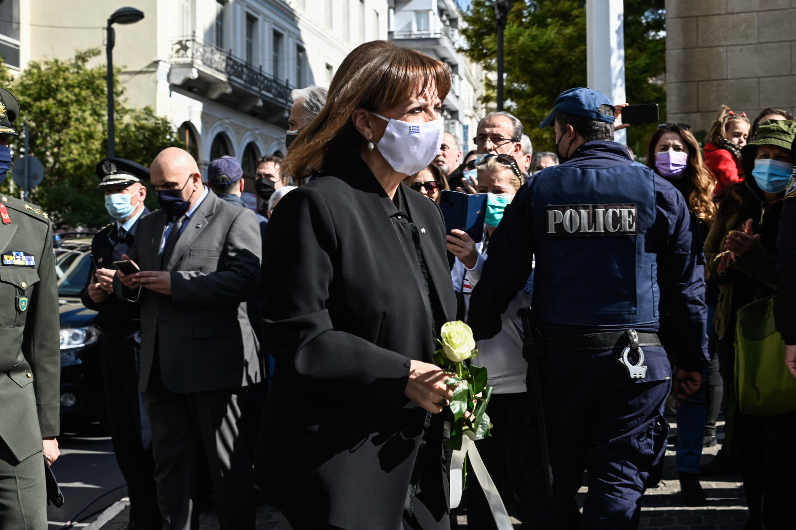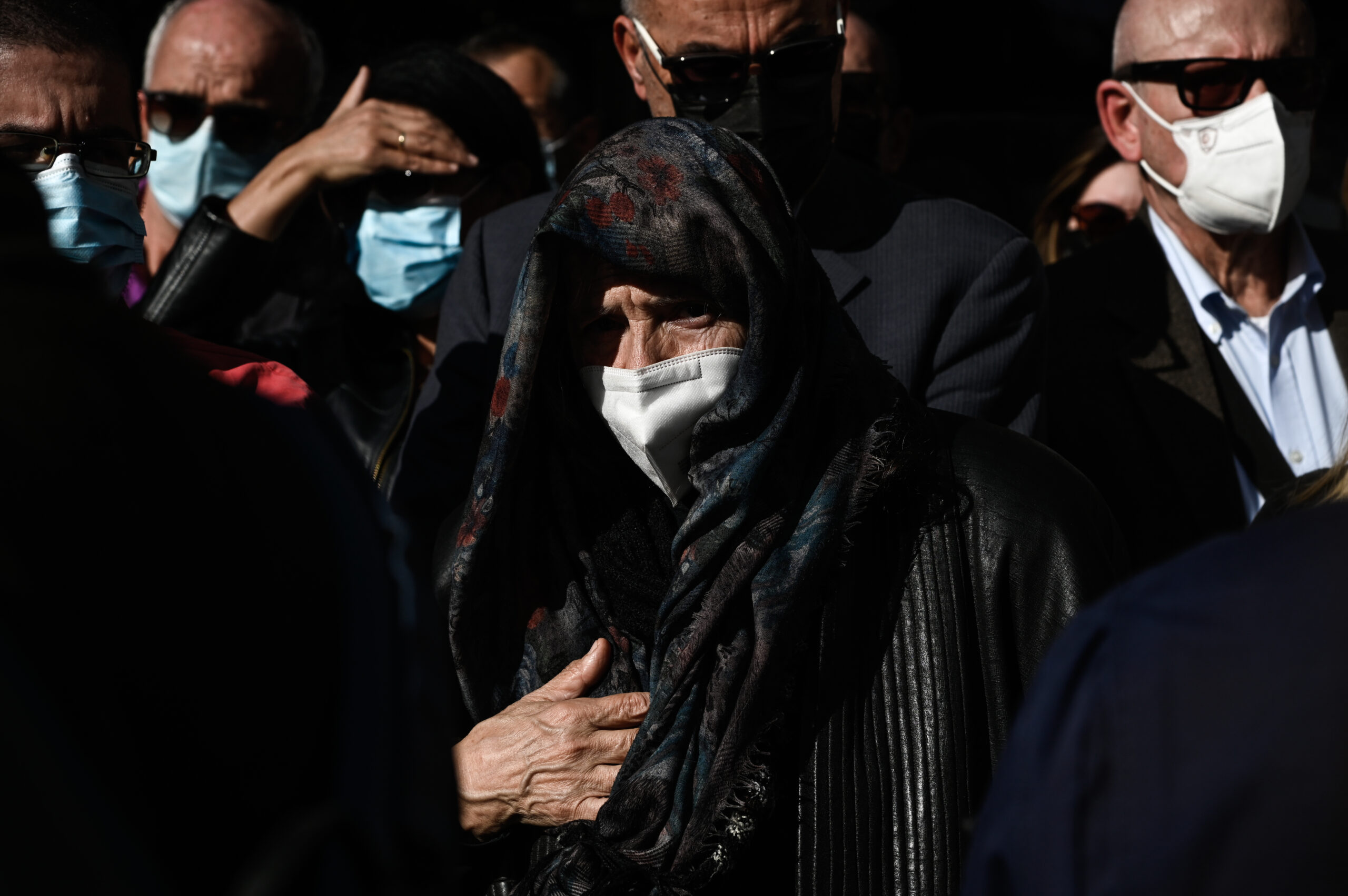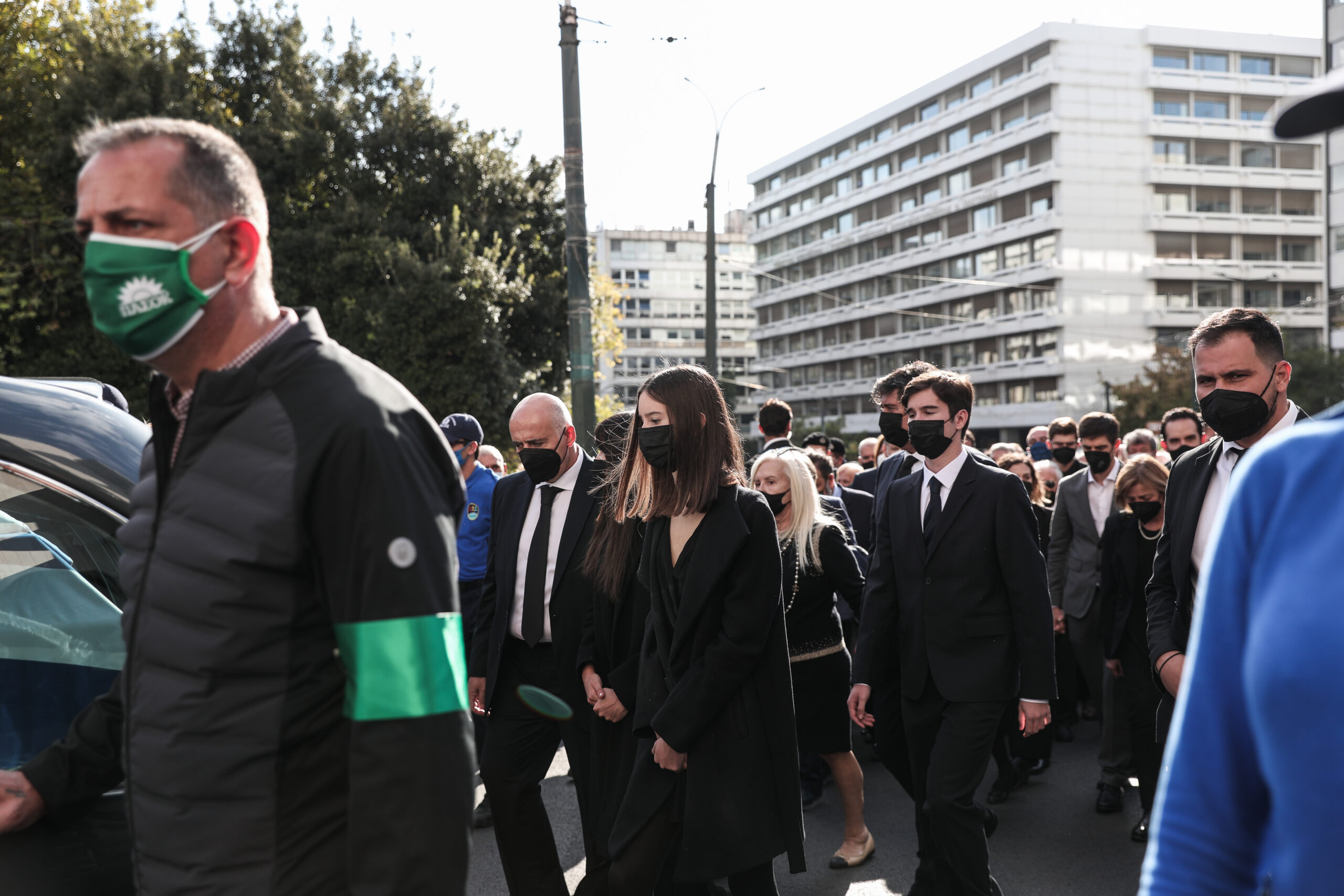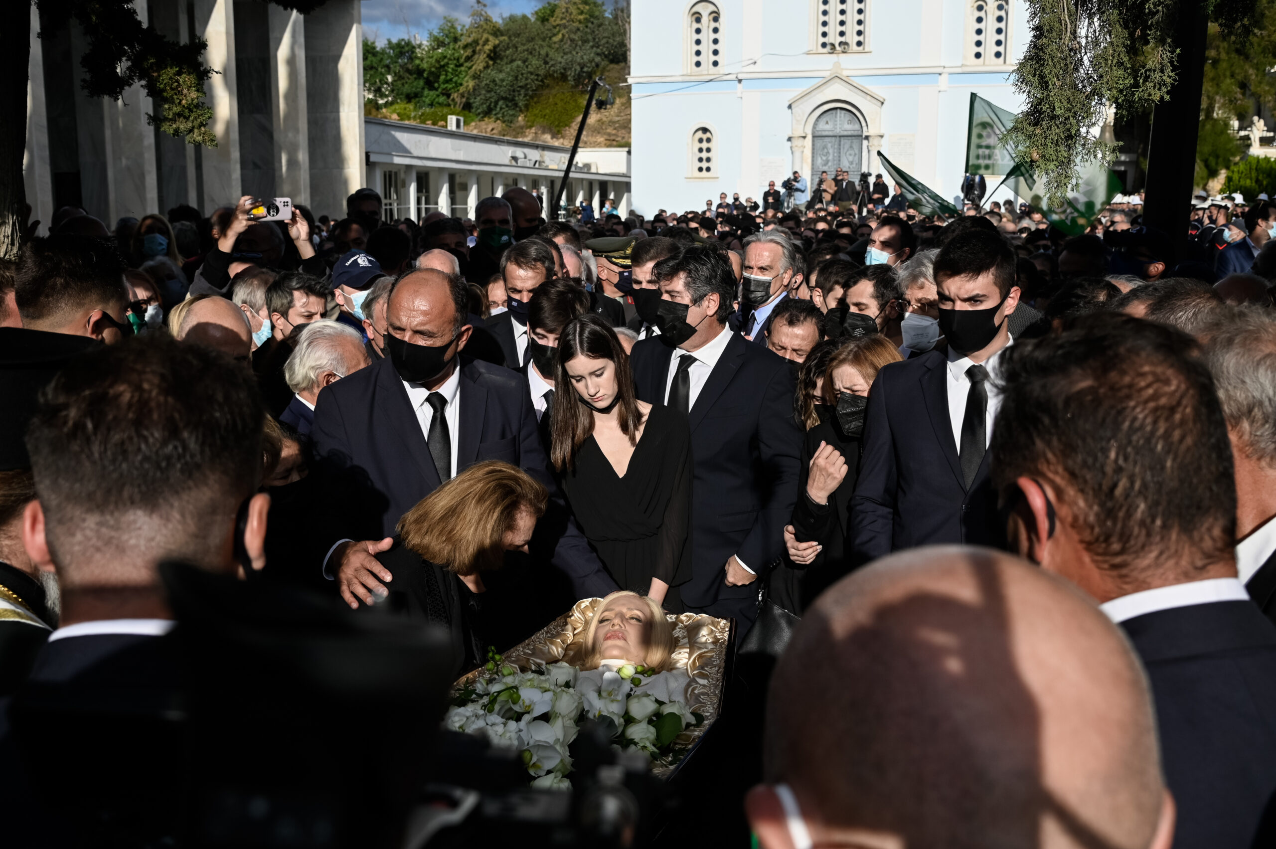 Μπροστά από τη Βουλή, στο μνημείο του Αγνώστου Στρατιώτη, η νεκρώσιμη πομπή πραγματοποίησε ολιγόλεπτη στάση.