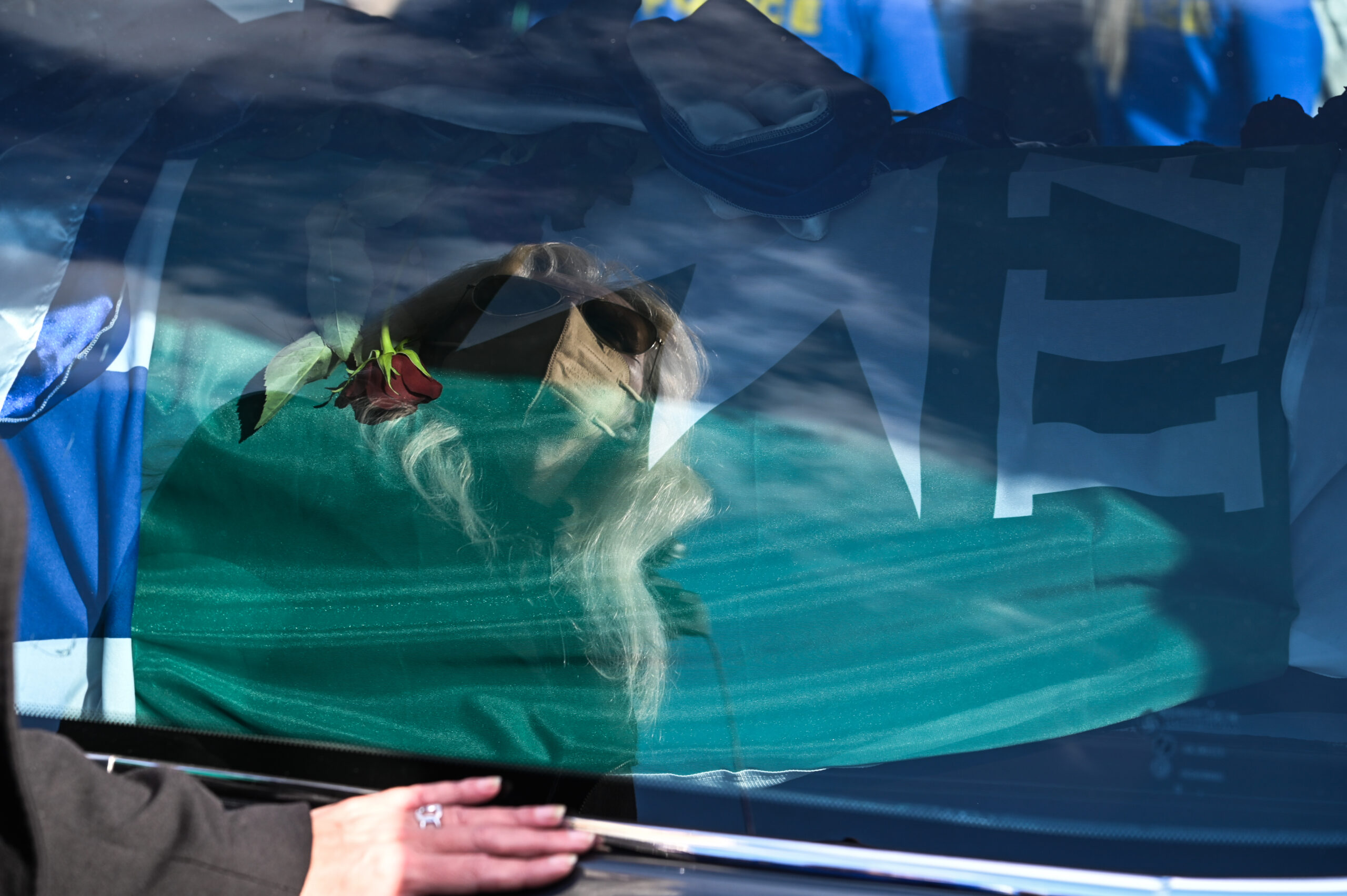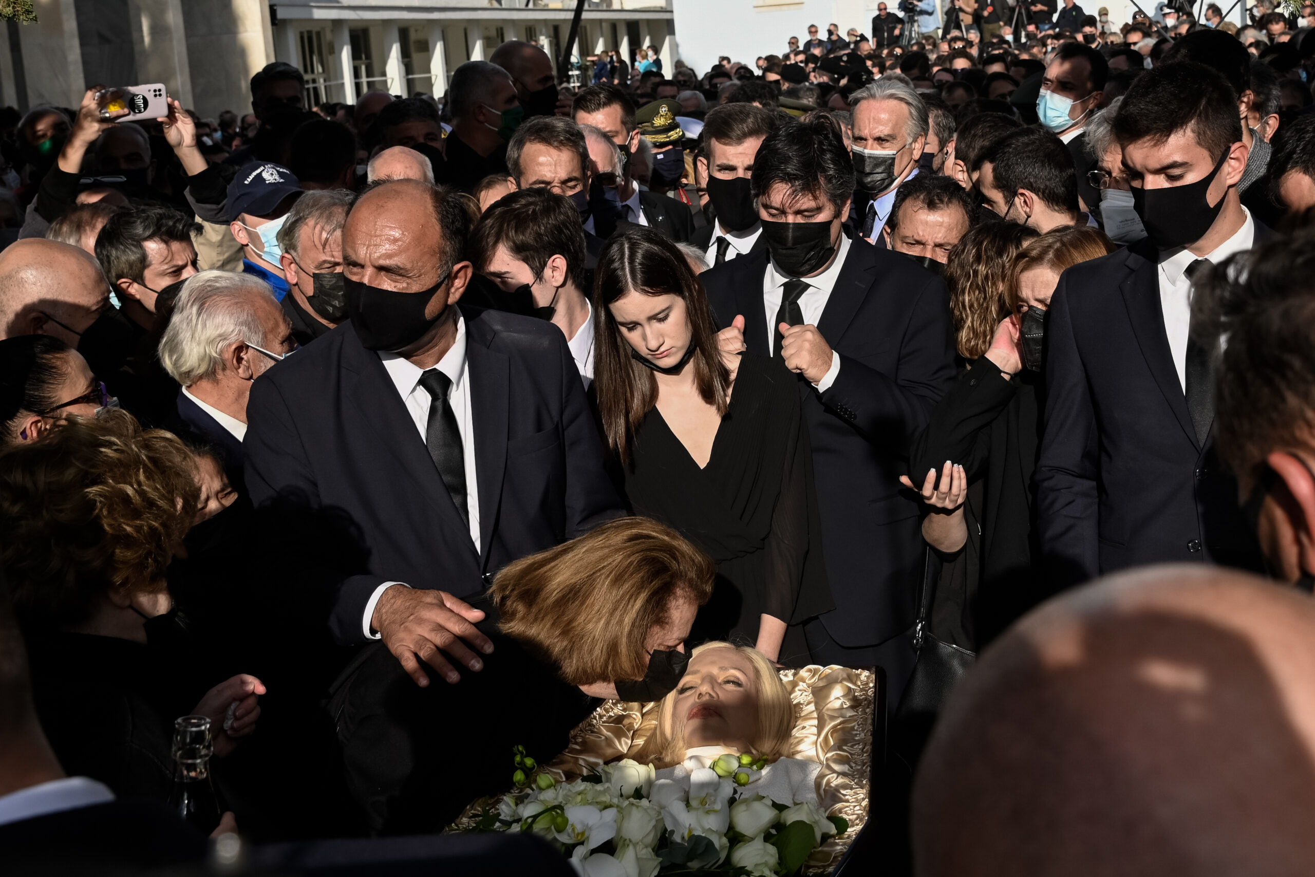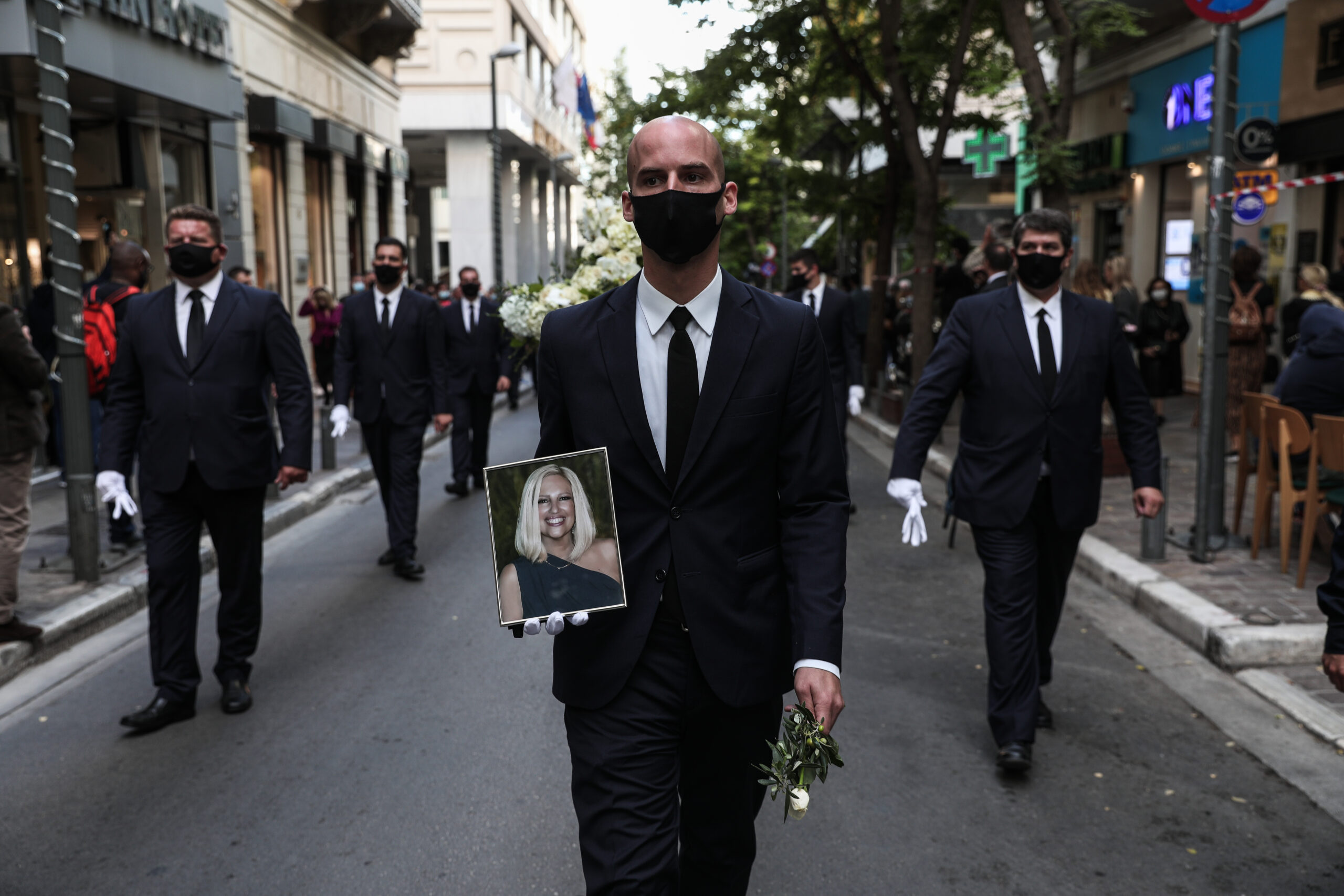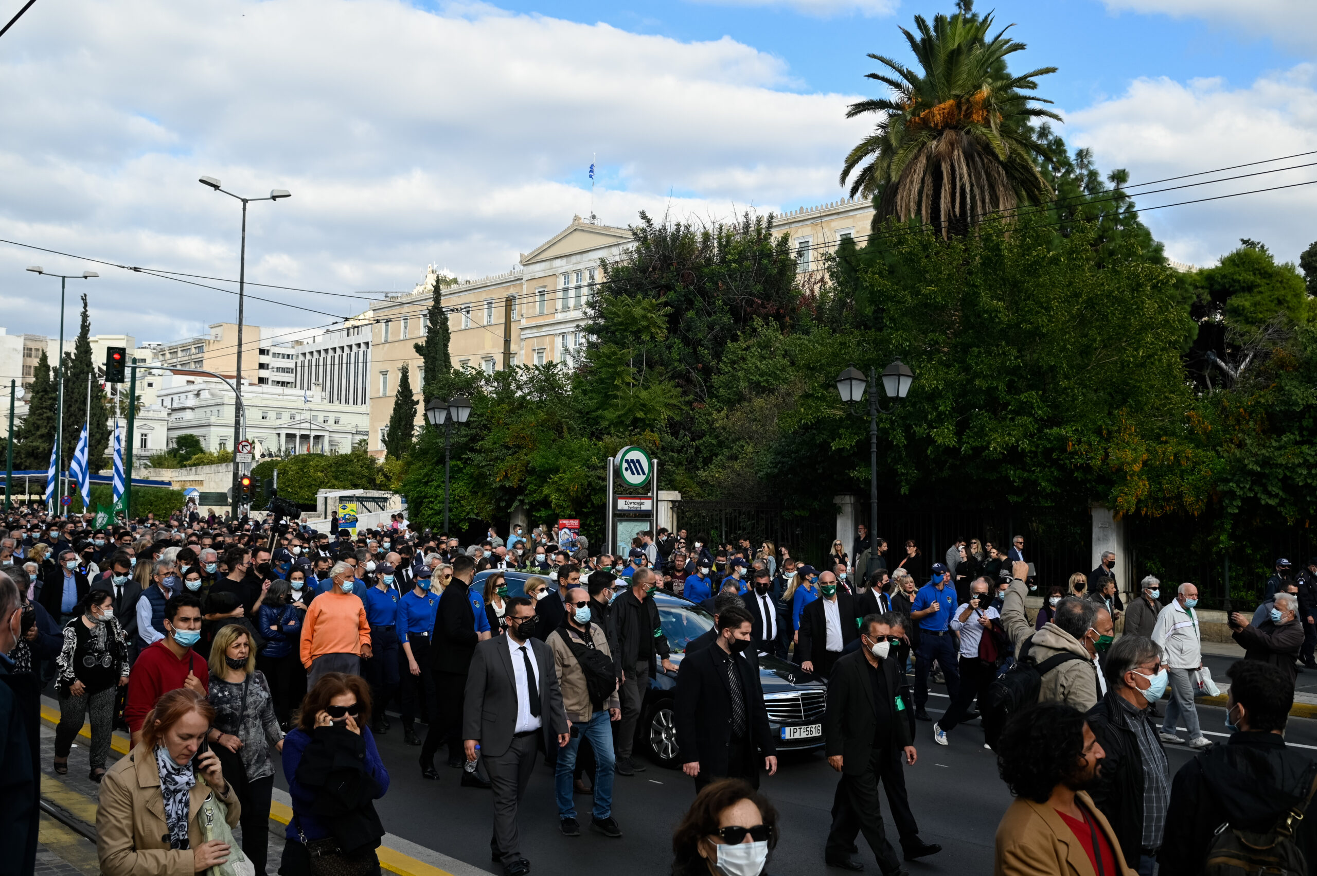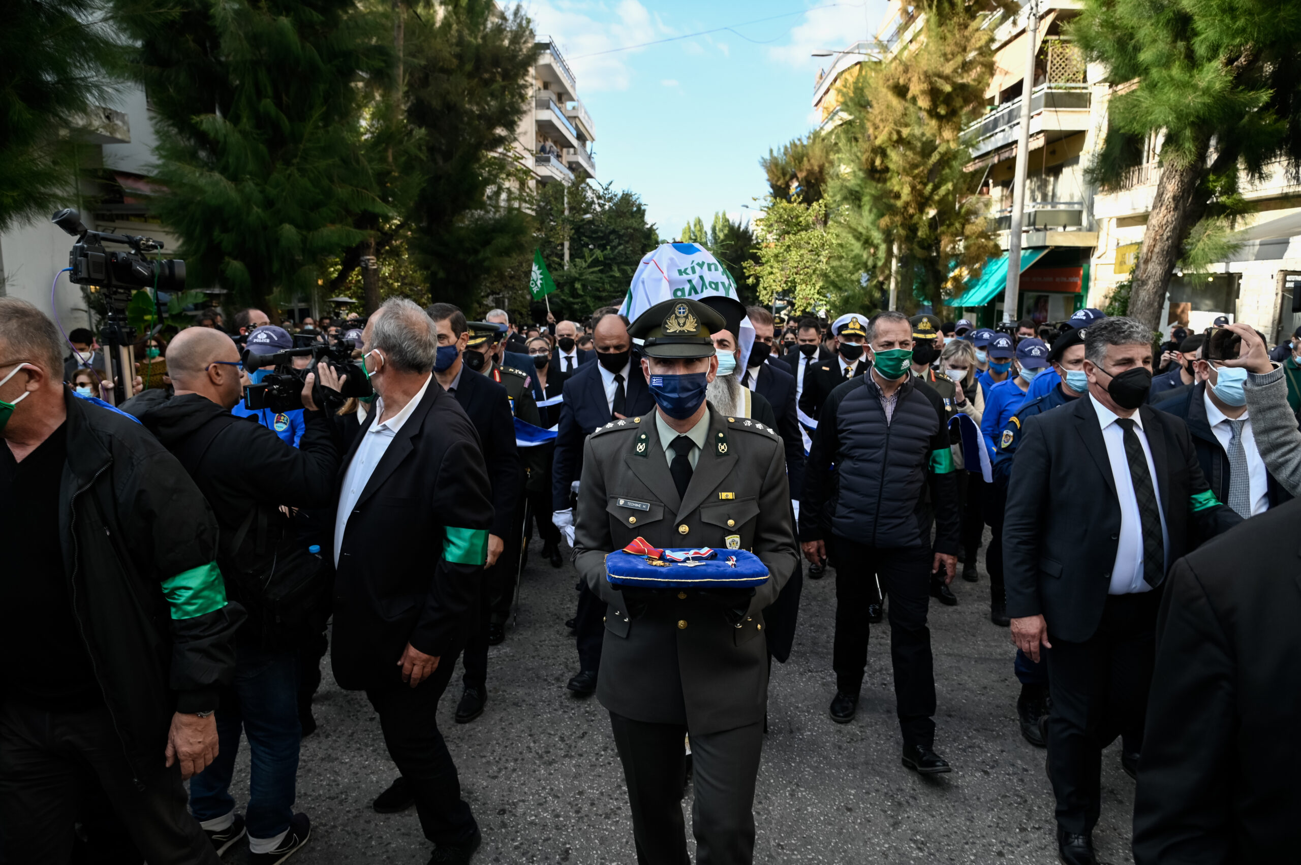 Μπροστά από τη Βουλή, στο μνημείο του Αγνώστου Στρατιώτη, η νεκρώσιμη πομπή πραγματοποίησε ολιγόλεπτη στάση.