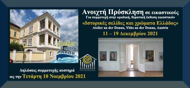 Ο Όμιλος για την UNESCO Τεχνών, Λόγου και Επιστημών Ελλάδος, στα πλαίσια των μεγάλων πολιτιστικών του δράσεων, διοργανώνει ομαδική, θεματική έκθεση εικαστικών τεχνών με τίτλο «Ιστορικές σελίδες και χρώματα Ελλάδος», η οποία θα πραγματοποιηθεί από 11 ως 19 Δεκεμβρίου 2021, στην Gallery Atelier an der Donau, στην πόλη Ybbs an der Donau, στην Αυστρία.