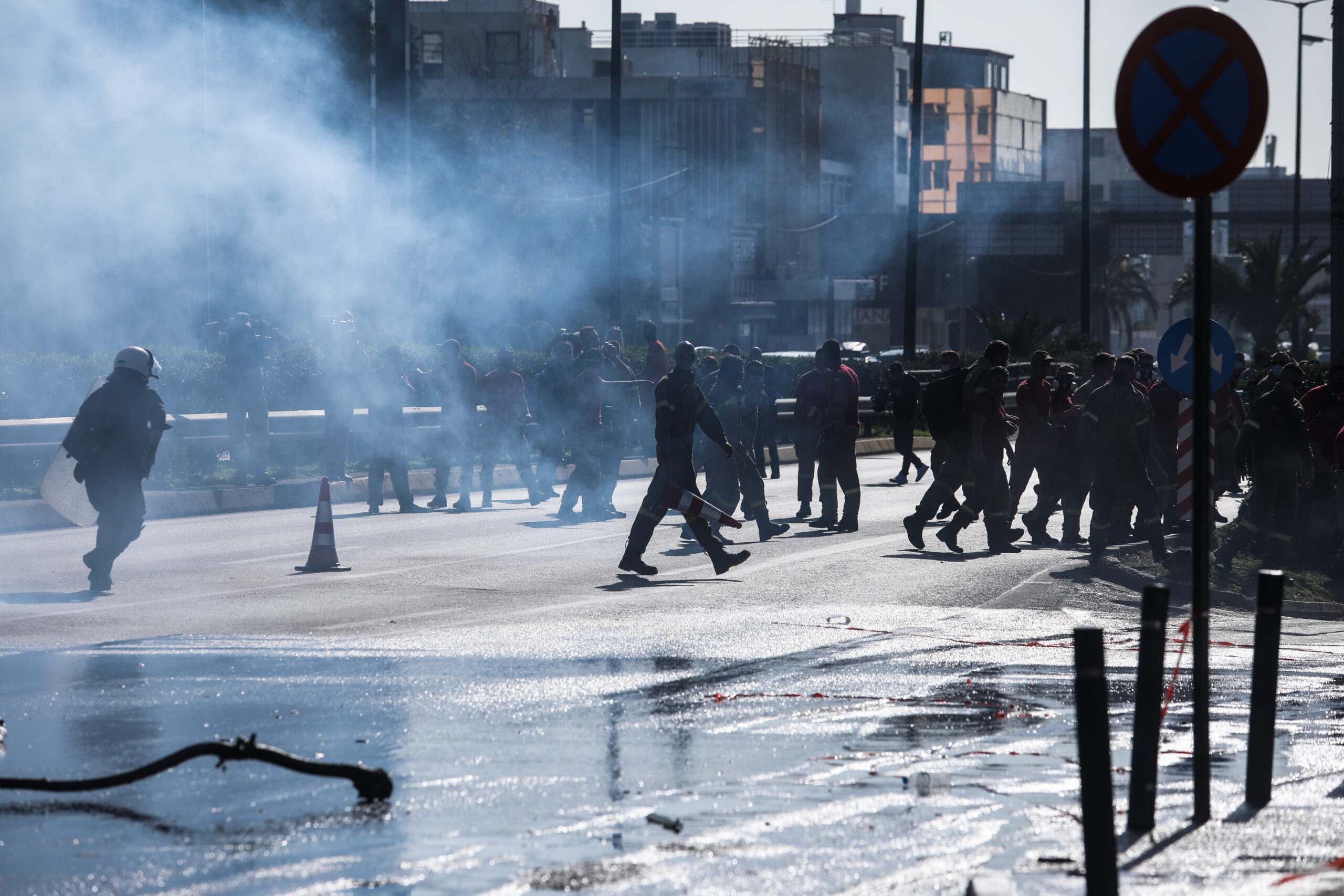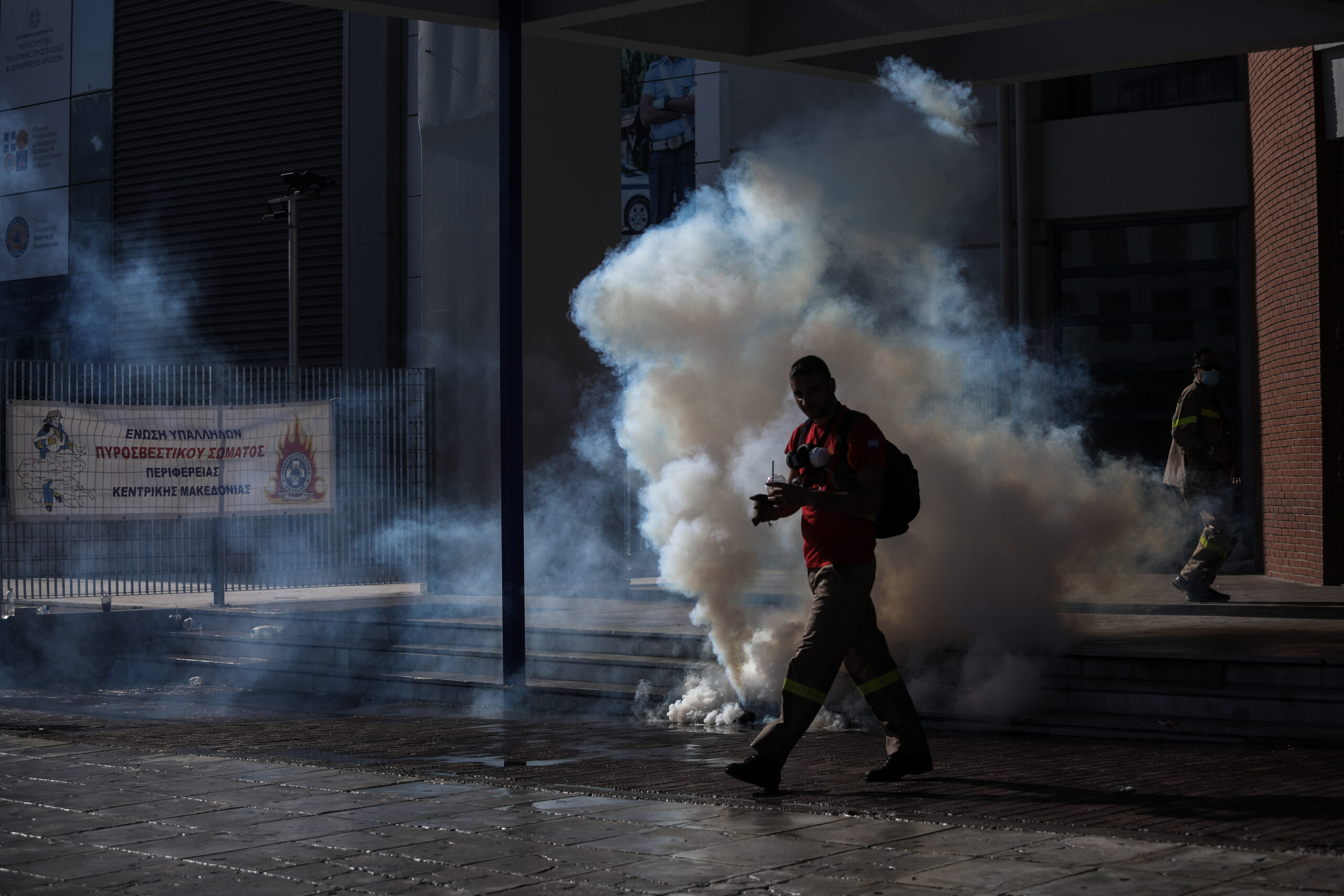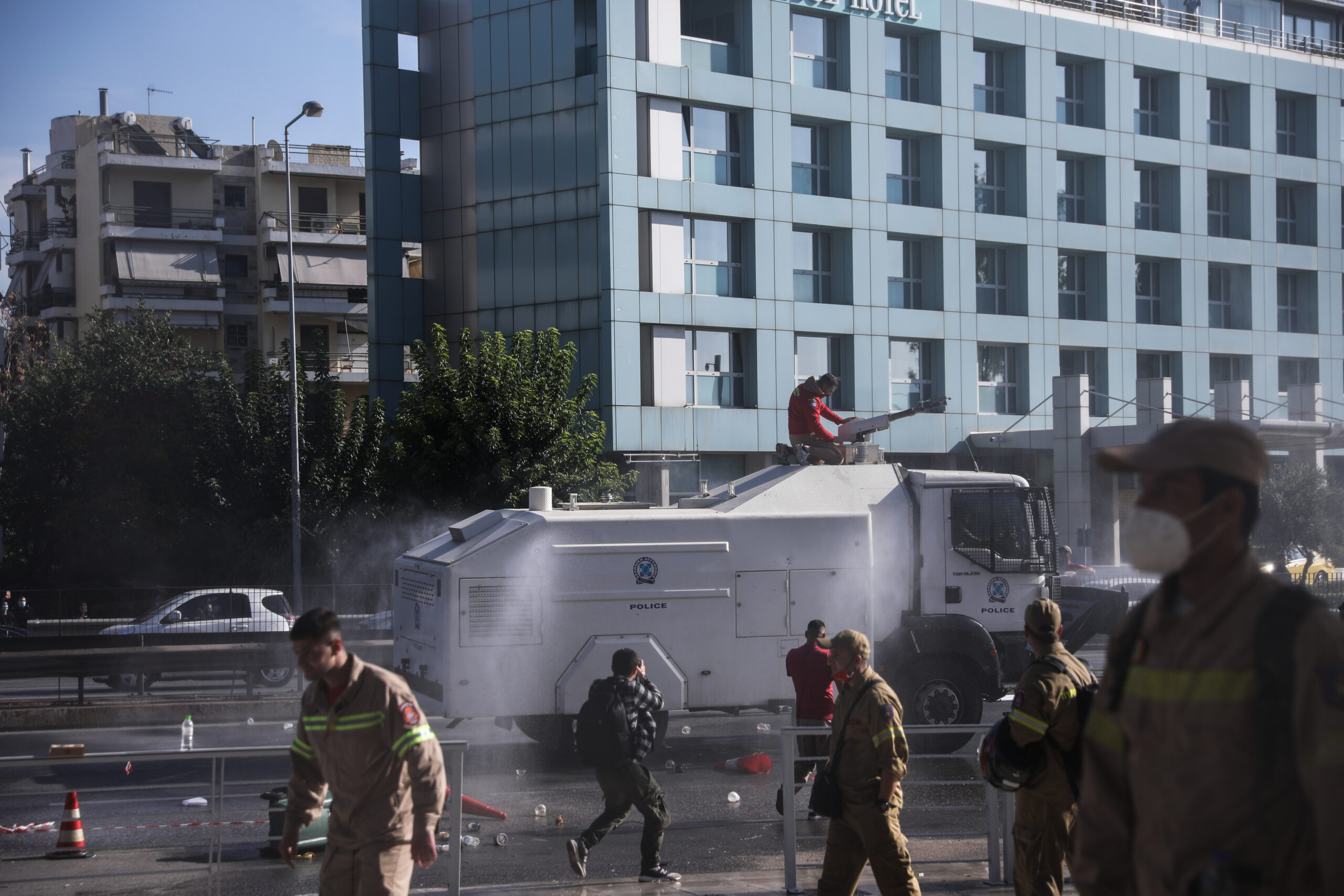 Αστυνομικοί προσπάθησαν να απομακρύνουν τους πυροσβέστες από τον δρόμο και επικράτησε ένταση, ενώ έγινε χρήση χημικών.