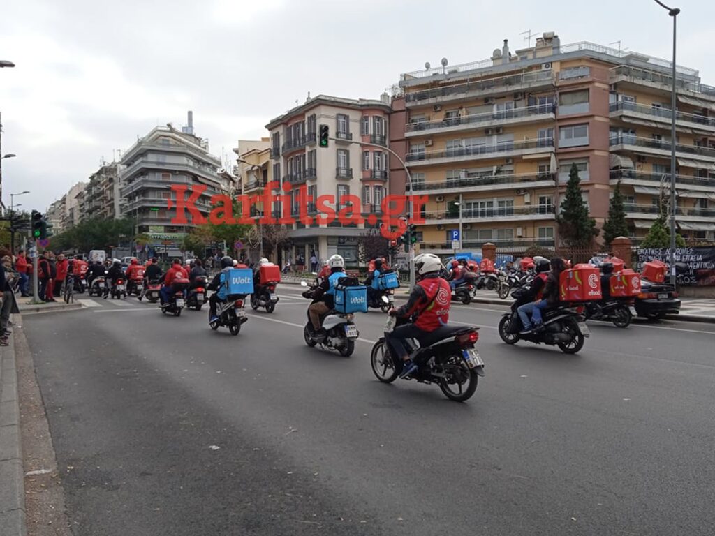 Συγκέντρωση διανομέων στη Θεσσαλονίκη με αφορμή της κινητοποίησης το τραγικό δυστύχημα που σημειώθηκε το βράδυ του Σάββατου 30 Οκτωβρίου.