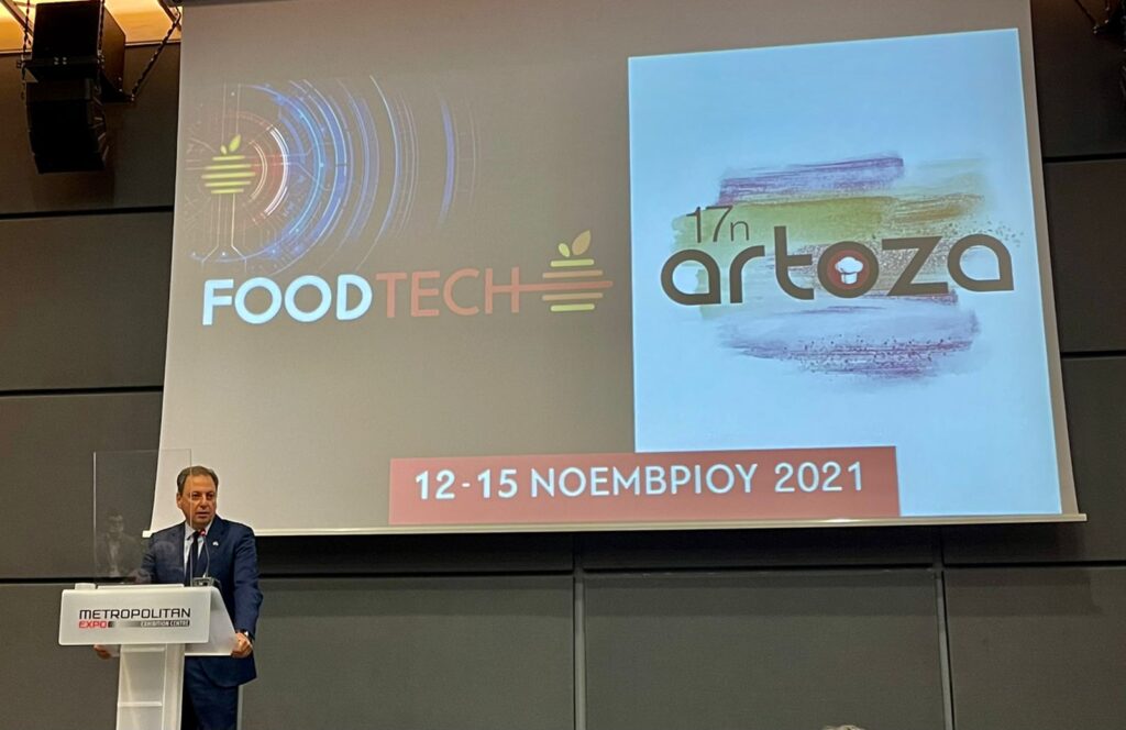 Η ανθεκτικότητα που επέδειξε ο κλάδος των τροφίμων και ποτών «ακόμα και μέσα στην πρωτόγνωρη υγειονομική κρίση, αποδεικνύει ότι πατάει σε γερές βάσεις και κυρίως ότι διαθέτει εξαιρετικές δυνατότητες και προοπτικές περαιτέρω ανάπτυξης και αύξησης των εξαγωγών» δήλωσε ο υπουργός Αγροτικής Ανάπτυξης και Τροφίμων, Σπήλιος Λιβανός κατά το χαιρετισμό του στην έκθεση FOODTECH & ARTOZA 2021.