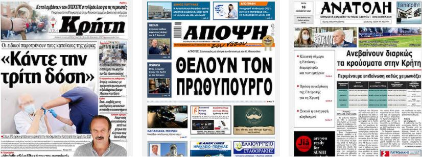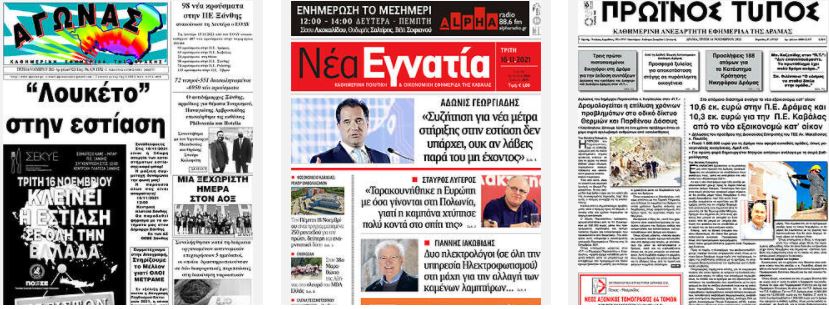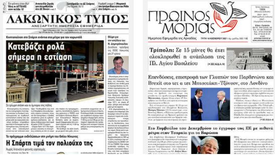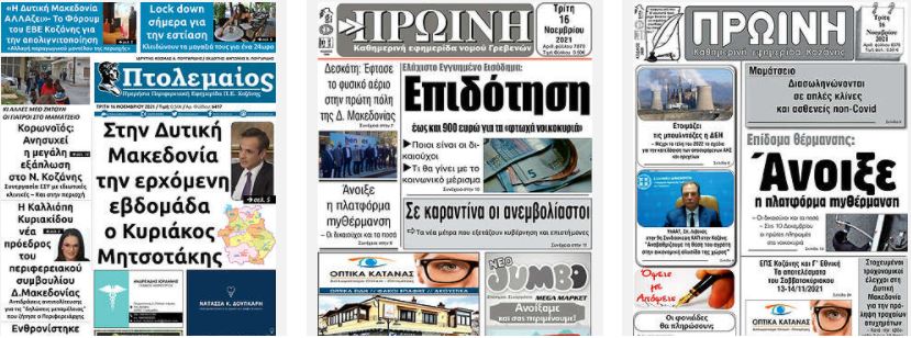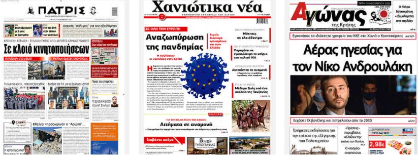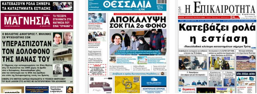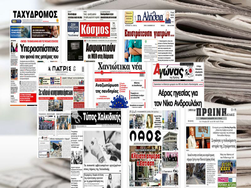 Κοινοποίηση Facebook Twitter LinkedIn Pinterest Email Copy Link Διαβάστε τα πρωτοσέλιδα των σημερινών τοπικών εφημερίδων πηγή frontpages.gr Πρωτοσέλιδα τοπικές εφημερίδες
