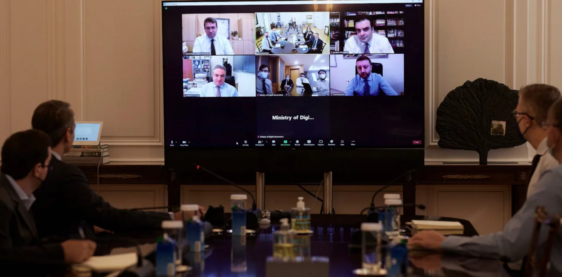 Στη σύσκεψη συμμετείχαν ο Υπουργός Επικρατείας και Ψηφιακής Διακυβέρνησης, Κυριάκος Πιερρακάκης, ο Υπουργός Επικρατείας, Γιώργος Γεραπετρίτης, ο Υπουργός Επικρατείας, αρμόδιος για τον Συντονισμό του Κυβερνητικού Έργου, Άκης Σκέρτσος, ο Υφυπουργός Ψηφιακής Διακυβέρνησης, αρμόδιος για θέματα απλούστευσης διαδικασιών, Γιώργος Γεωργαντάς, ο Υφυπουργός Ψηφιακής Διακυβέρνησης, αρμόδιος για τις τηλεπικοινωνίες και το Κτηματολόγιο, Θεόδωρος Λιβάνιος, ο Γενικός Γραμματέας Πληροφοριακών Συστημάτων Δημόσιας Διοίκησης, Δημοσθένης Αναγνωστόπουλος, ο Γενικός Γραμματέας Ψηφιακής Διακυβέρνησης και Απλούστευσης Διαδικασιών, Λεωνίδας Χριστόπουλος, ο Πρόεδρος Γνωμοδοτικής Επιτροπής ΕΔΥΤΕ & Κοσμήτορας Σχολής Ηλεκτρολόγων Μηχανικών και Μηχανικών ΗΥ, Άρης Κοζύρης και ο Διευθυντής του Γραφείου Τύπου Πρωθυπουργού, Δημήτρης Τσιόδρας.