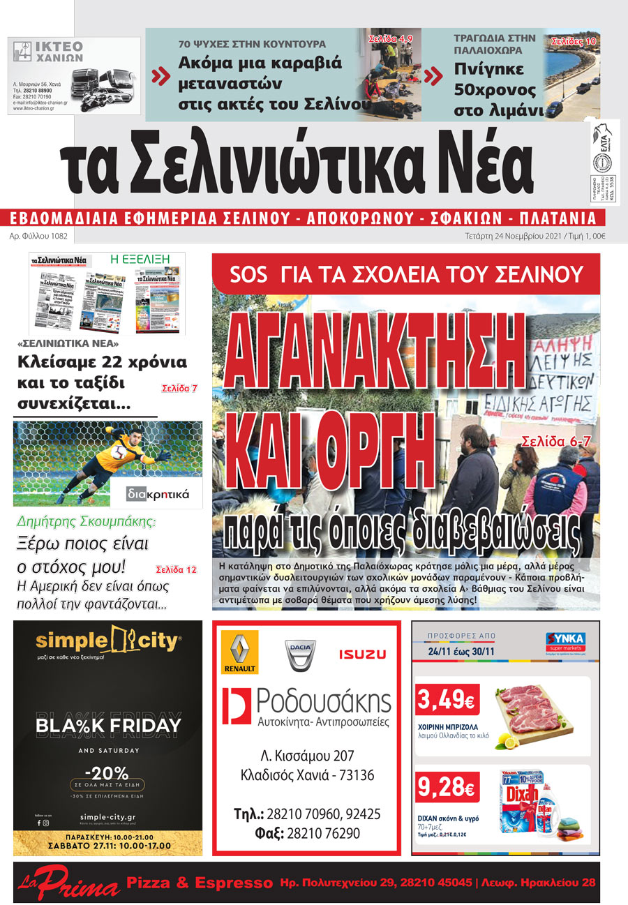 Κοινοποίηση Facebook Twitter LinkedIn Pinterest Email Copy Link Δείτε το πρωτοσέλιδο της τοπικής εφημερίδας Σελινιώτικα Νέα: Σελινιώτικα Νέα