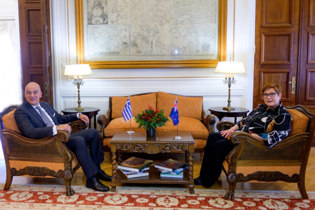 Meeting with #Australia FM @MarisePayne followed by expanded talks between the two delegations in the presence of DFMs @CFragoyiannis & @katsaniotis. (1/2) pic.twitter.com/zzRjnipvZn