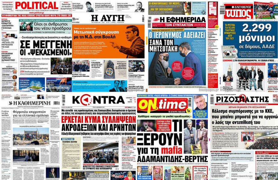 Κοινοποίηση Facebook Twitter LinkedIn Pinterest Email Copy Link Δείτε τα πρωτοσέλιδα των σημερινών εφημερίδων Πρωτοσέλιδα