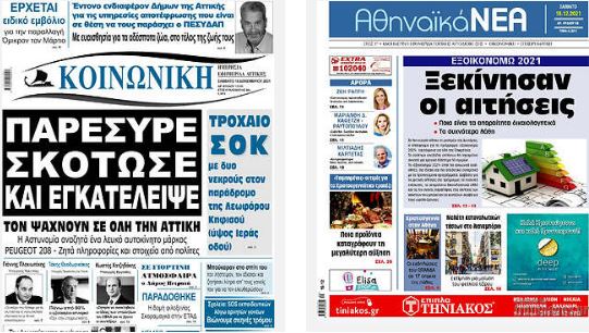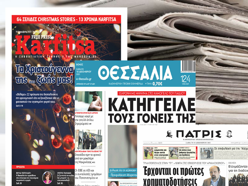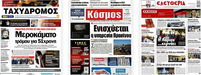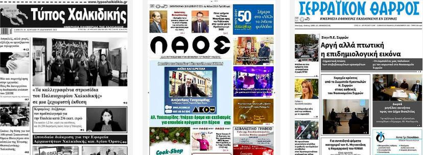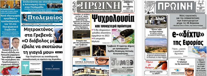 Κοινοποίηση Facebook Twitter LinkedIn Pinterest Email Copy Link Διαβάστε τα πρωτοσέλιδα των σημερινών τοπικών εφημερίδων πηγή frontpages.gr Πρωτοσέλιδα τοπικές εφημερίδες