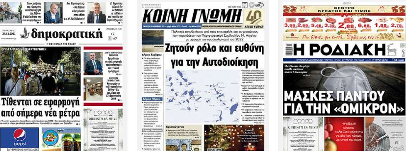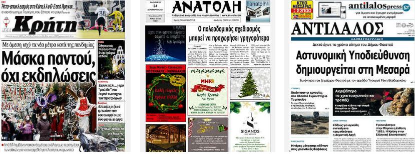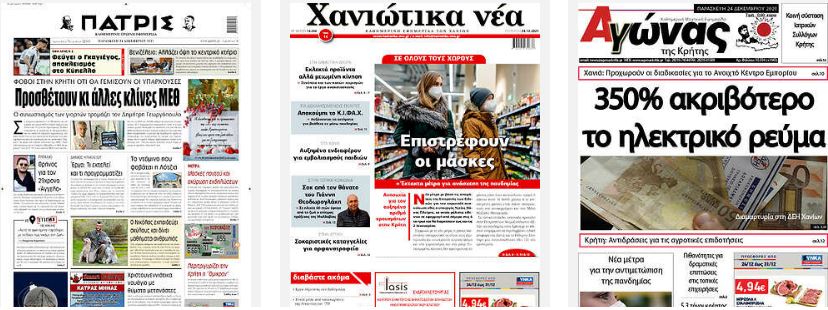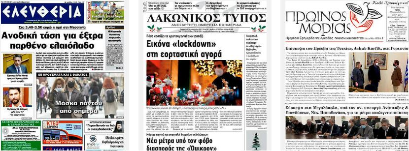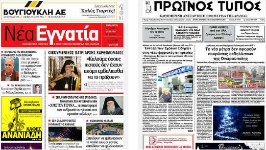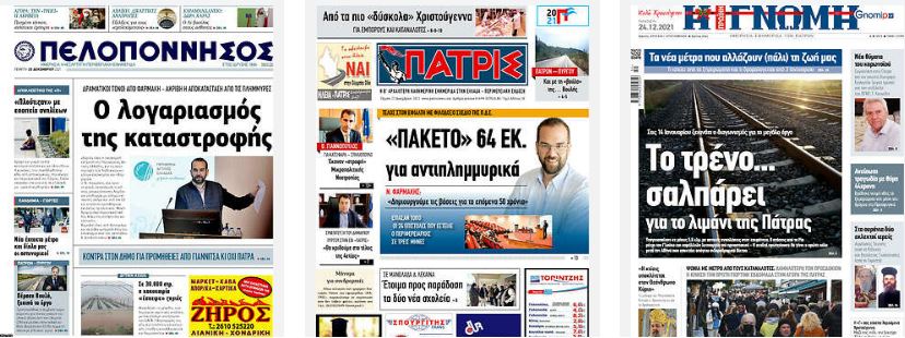 Κοινοποίηση Facebook Twitter LinkedIn Pinterest Email Copy Link Διαβάστε τα πρωτοσέλιδα των σημερινών τοπικών εφημερίδων πηγή frontpages.gr Πρωτοσέλιδα τοπικές εφημερίδες