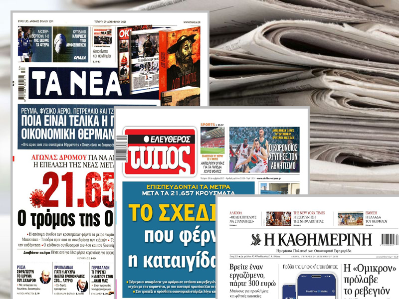 Κοινοποίηση Facebook Twitter LinkedIn Pinterest Email Copy Link Διαβάστε τα πρωτοσέλιδα των σημερινών εφημερίδων Εφημερίδες Πρωτοσέλιδα