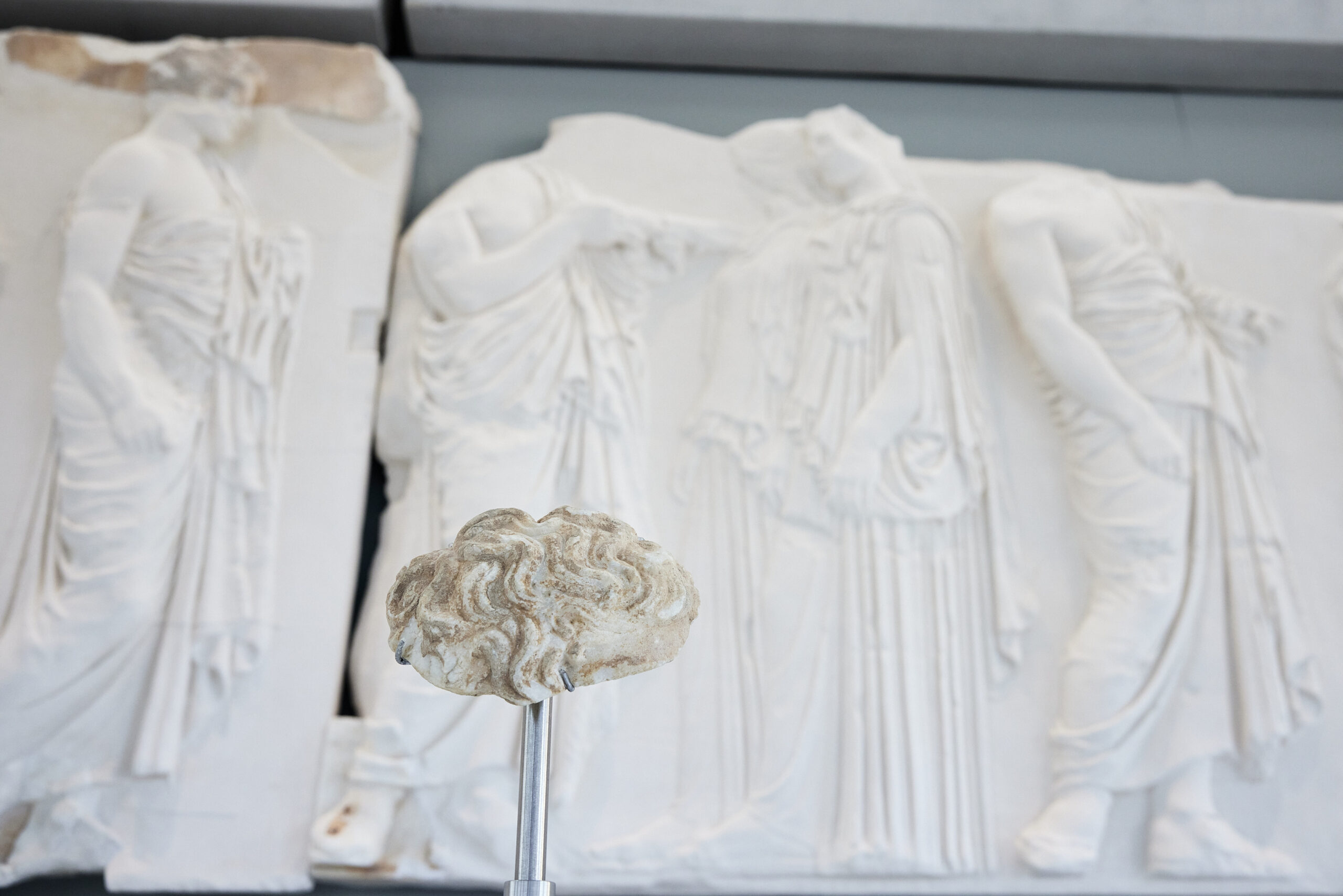 Τα πολύτιμα αυτά θραύσματα φυλασσόντουσαν για δεκαετίες στο Εθνικό Αρχαιολογικό Μουσείο. Τώρα, όμως, επανατοποθετούνται εκεί που τα όρισαν οι δημιουργοί τους και η ιστορία. Και αυτό είναι μία ακόμα απόδειξη πως η επανένωση των Γλυπτών της Ακρόπολης, του Παρθενώνα δεν αποτελεί θέμα απόστασης, γιατί είτε αυτά βρίσκονται εδώ στην Αθήνα είτε οπουδήποτε στον κόσμο, προορισμός τους είναι μόνο ο Ιερός Βράχος και το σπουδαίο αυτό μουσείο.