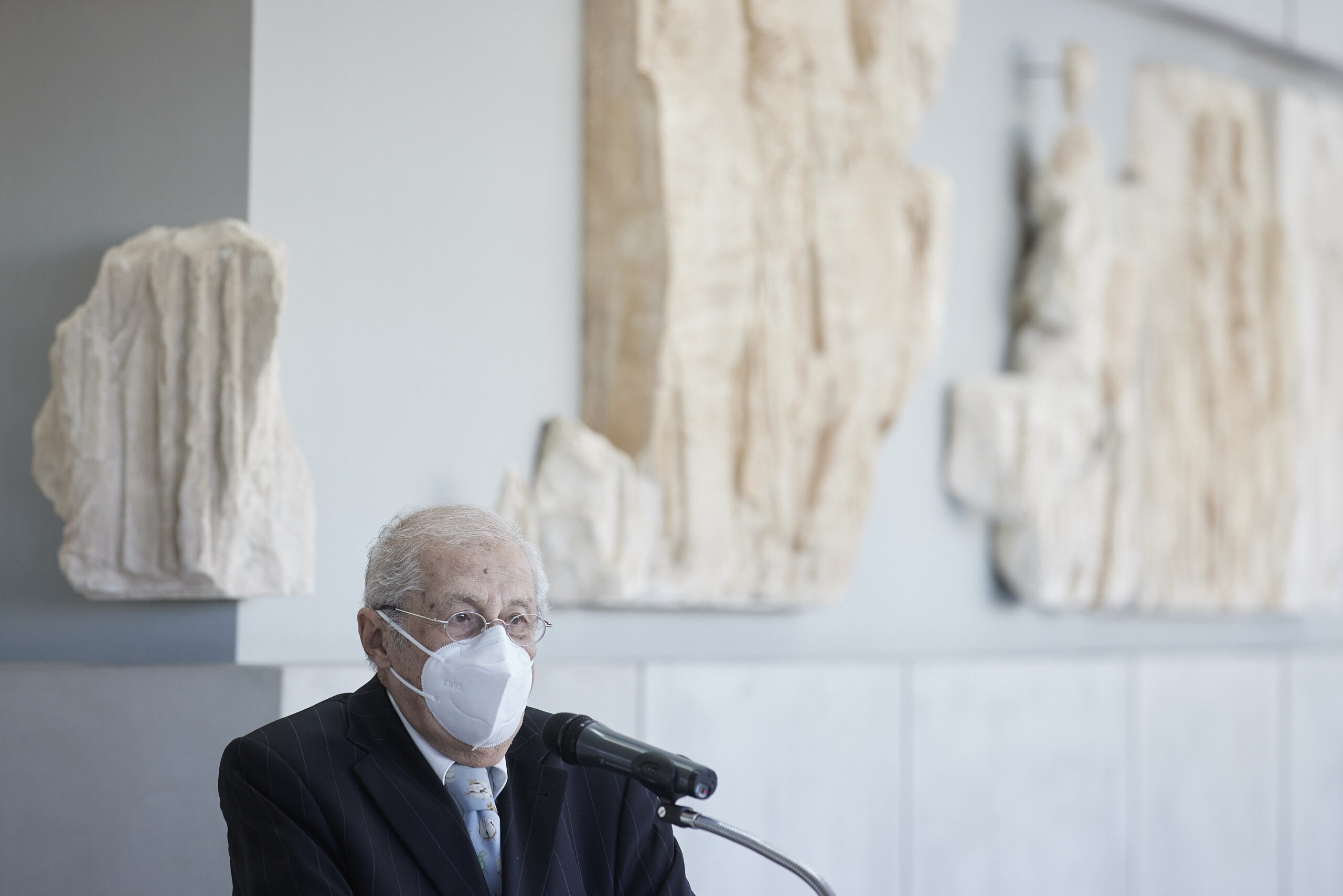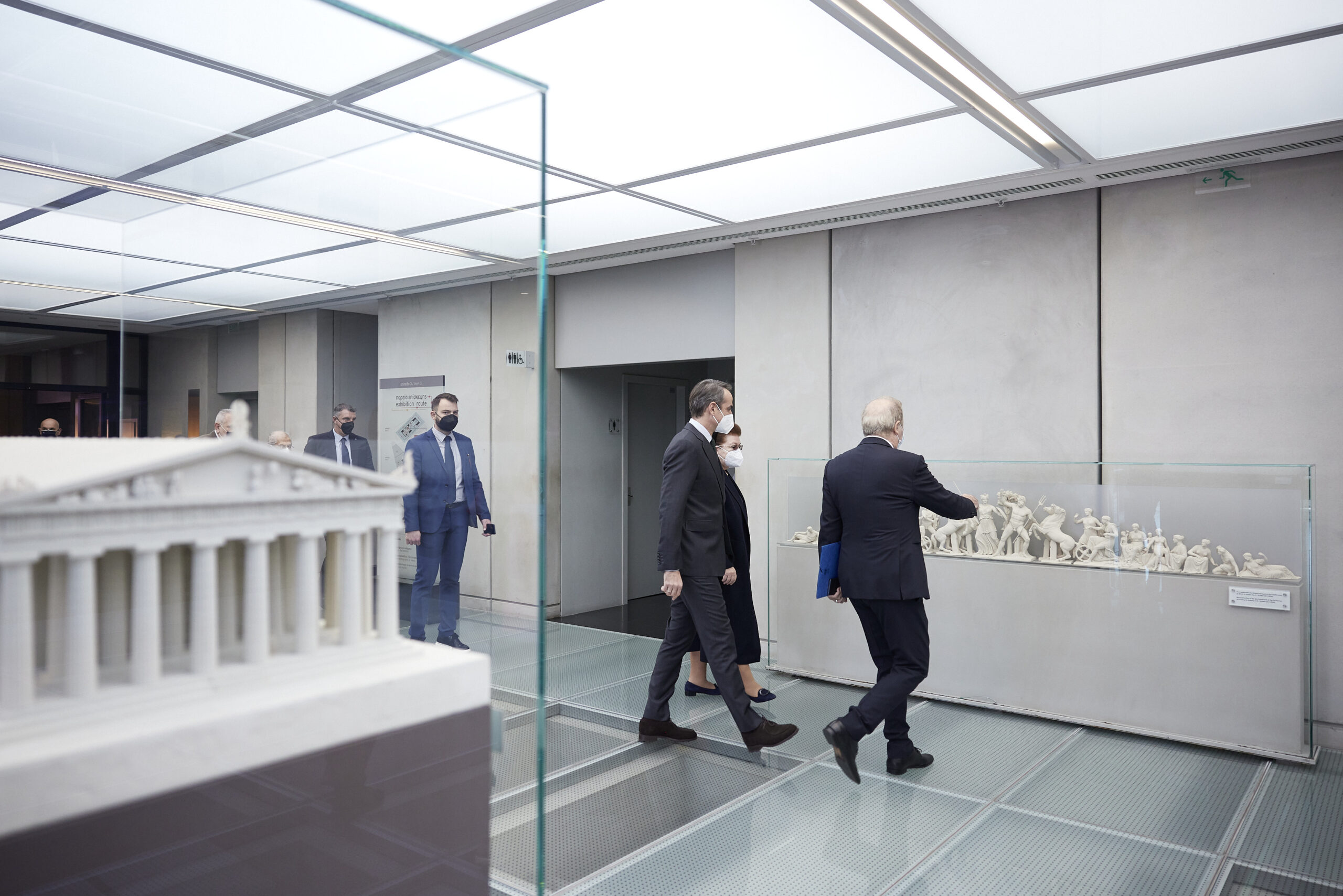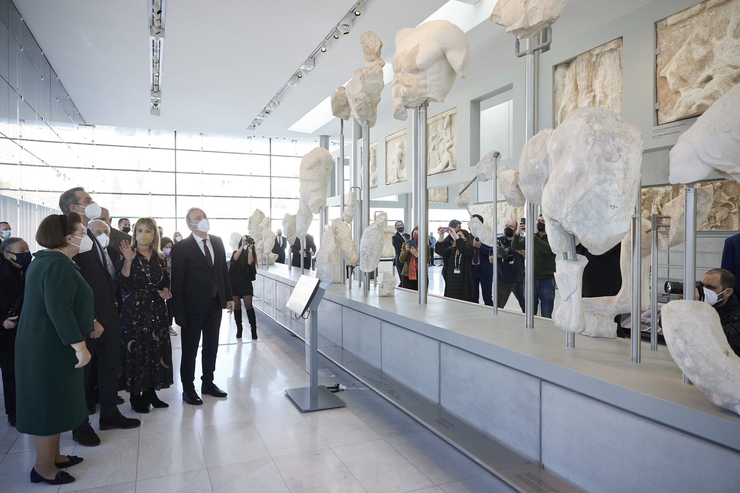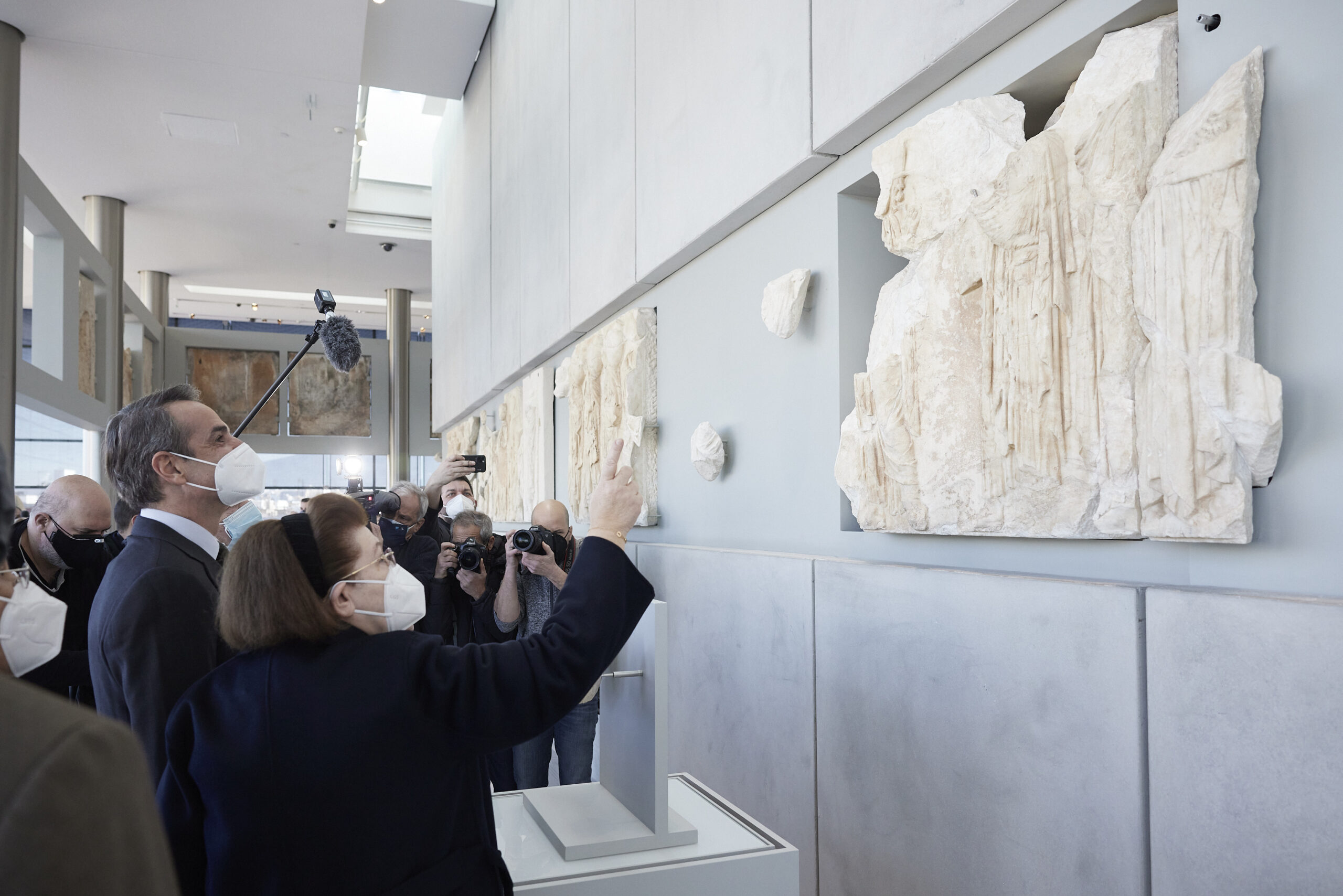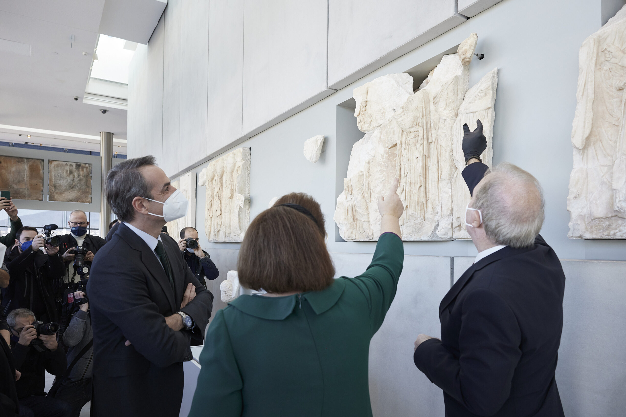Ο Κυριάκος Μητσοτάκης σημείωσε ότι «το Εθνικό Αρχαιολογικό Μουσείο δείχνει ένα δρόμο ευθύνης και επιστημονικής συνέπειας. Αυτό το δρόμο ακολουθεί και συνολικά η ελληνική πολιτεία, αναβαθμίζοντας σε ανώτατο κυβερνητικό επίπεδο την επιστροφή των γλυπτών του Παρθενώνα από το Βρετανικό Μουσείο. Ένα αίτημα της UNESCO, ένα αίτημα πια της πλειοψηφίας της κοινής γνώμης και στο Ηνωμένο Βασίλειο. Αλλά και ένα θέμα το οποίο πιστεύω ότι αντιλαμβάνεται και προσωπικά ο Πρωθυπουργός Μπόρις Τζόνσον, όπως διαπίστωσα στην πρόσφατη συνάντησή μας».