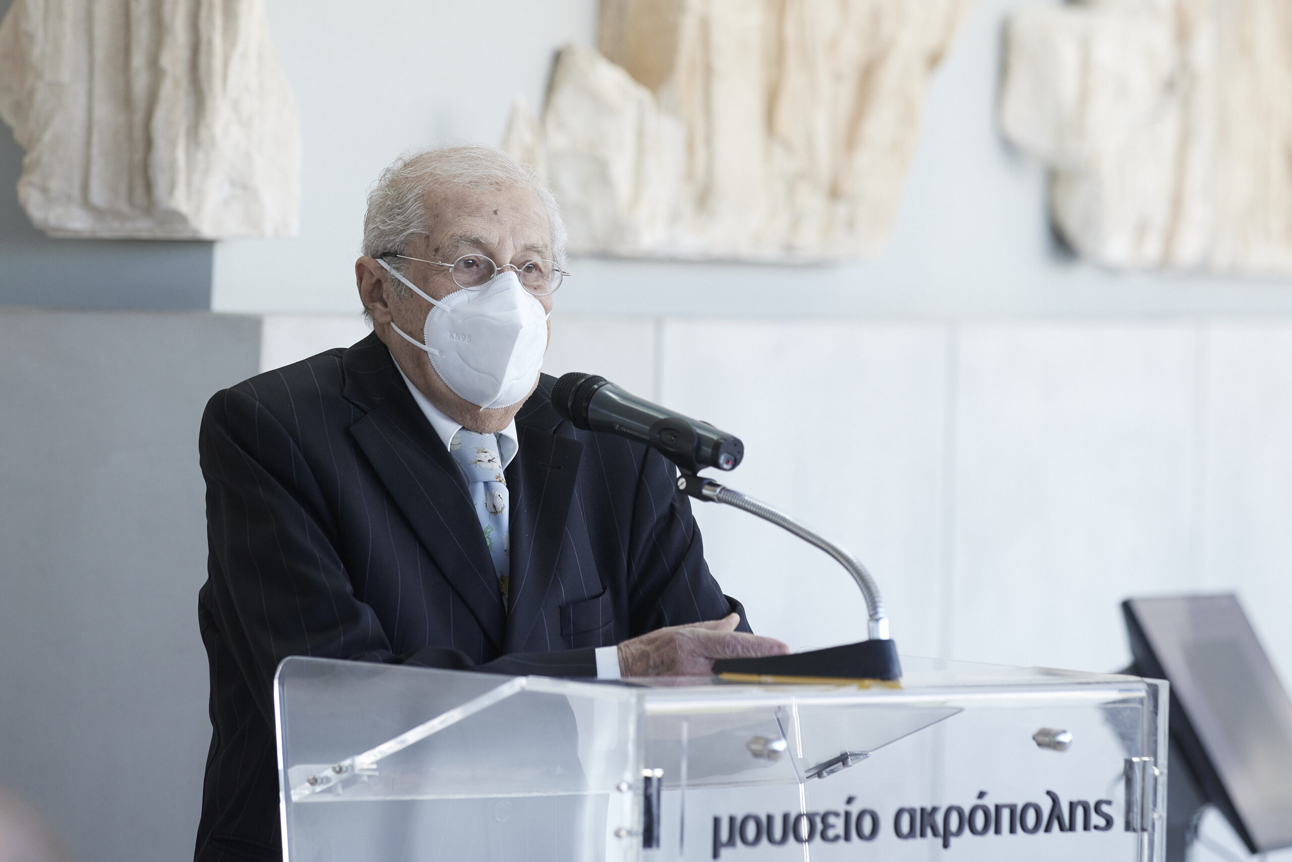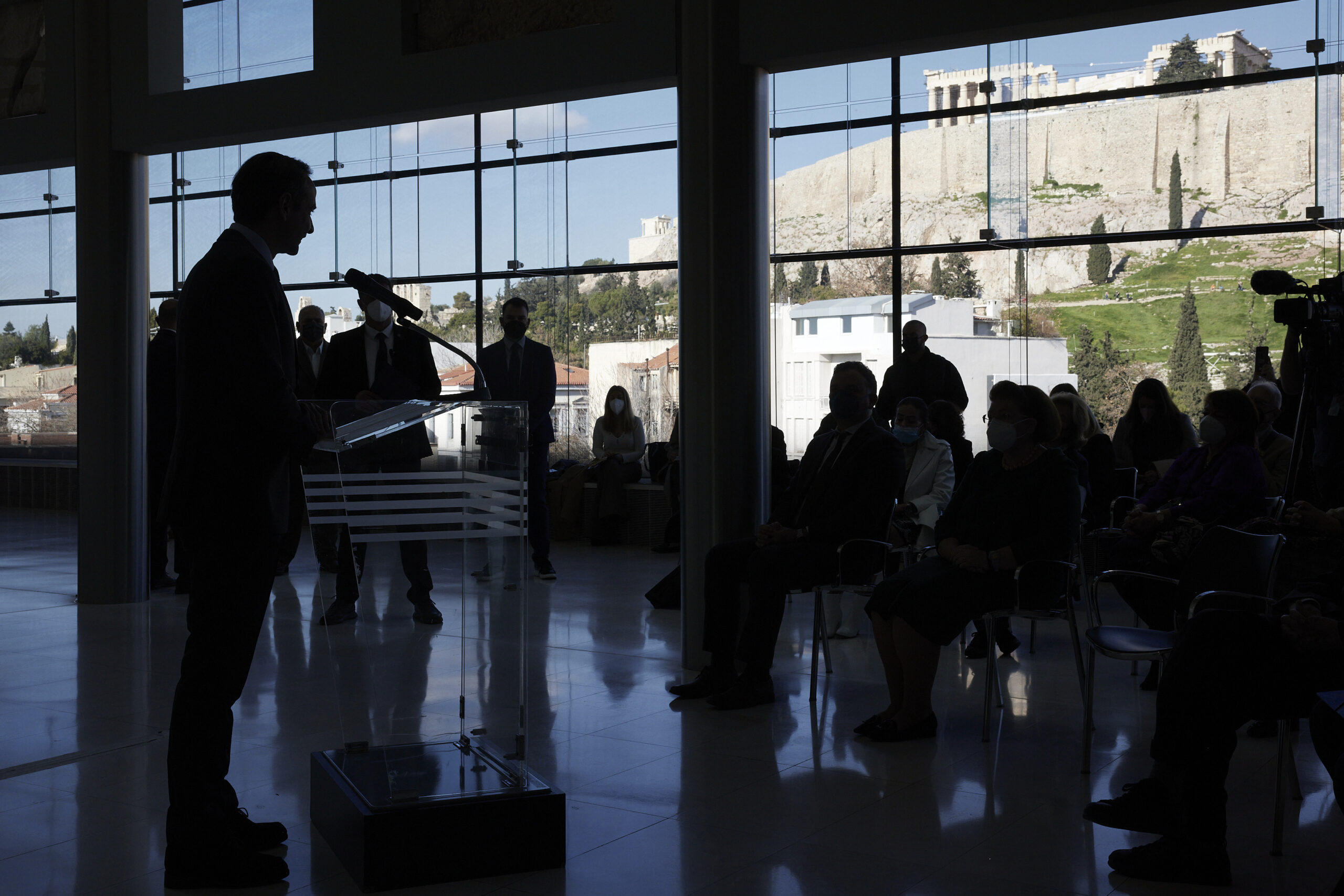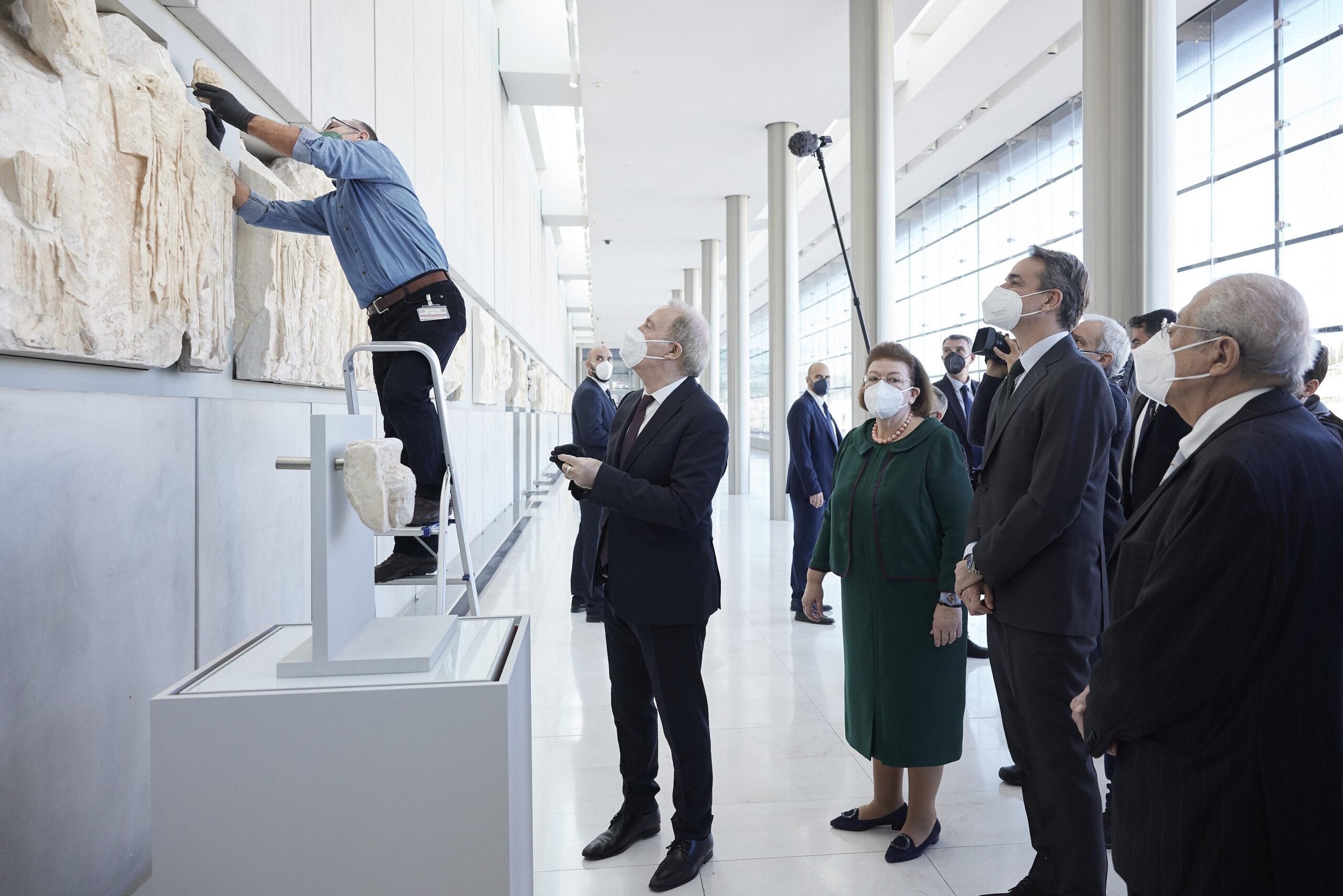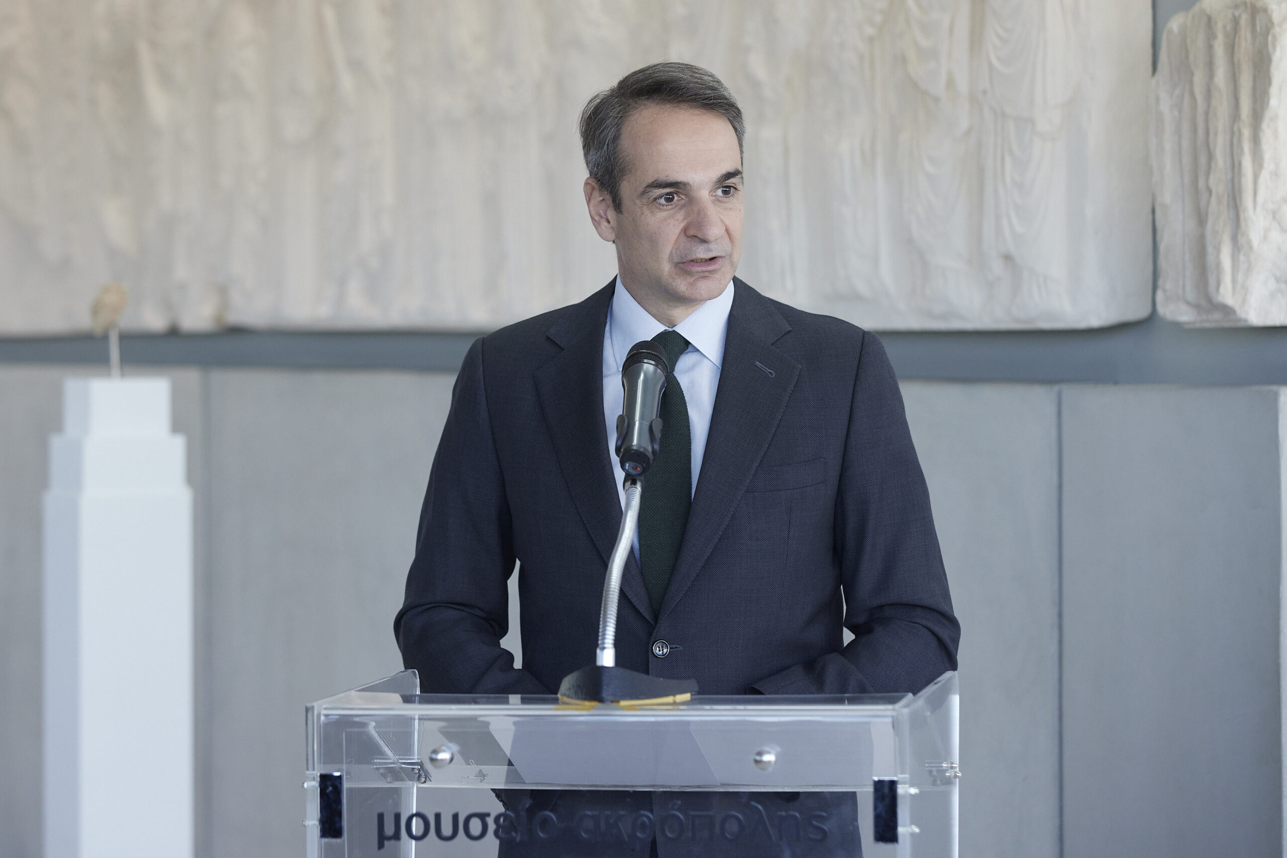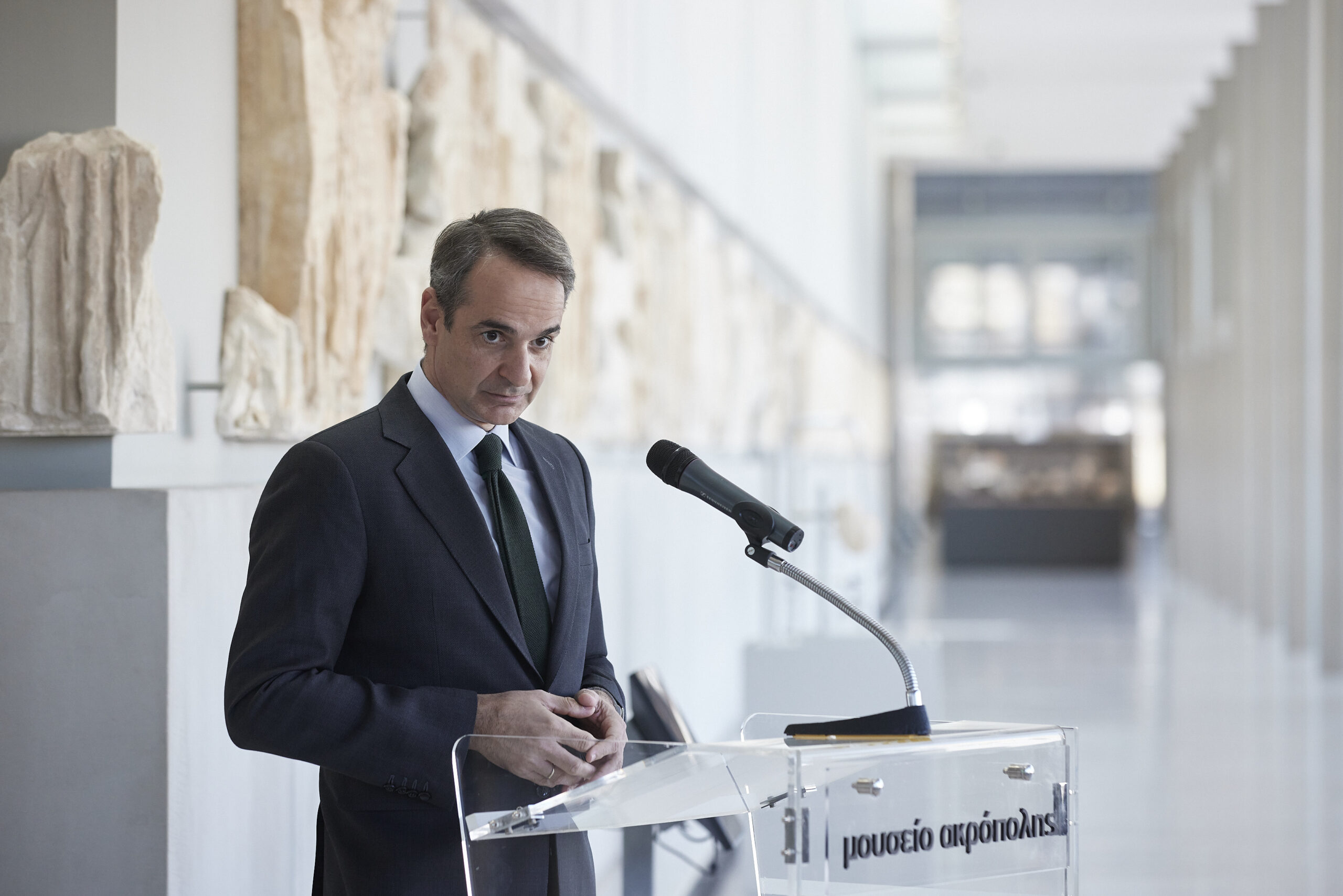 Κυριάκος Μητσοτάκης με αφορμή τη σημερινή εκδήλωση για την επιστροφή θραυσμάτων των Γλυπτών του Παρθενώνα από το Εθνικό Αρχαιολογικό Μουσείο, στο Μουσείο της Ακρόπολης.