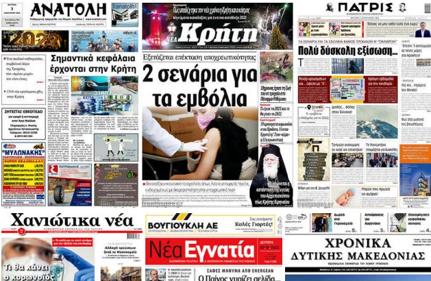 Κοινοποίηση Facebook Twitter LinkedIn Pinterest Email Copy Link Δείτε τα πρωτοσέλιδα των σημερινών τοπικών εφημερίδων πρωτοσέλιδα τοπικών εφημερίδων