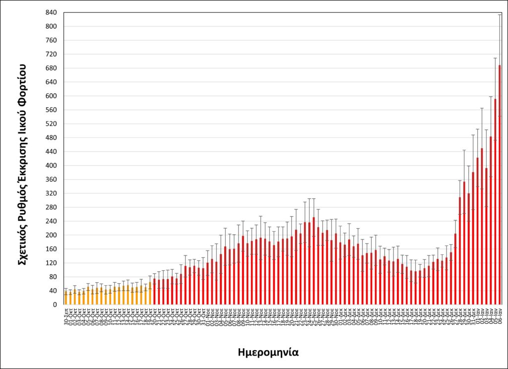 Έπειτα από δύο ημέρες που παρατηρήθηκαν ενδείξεις επιβράδυνσης της εκρηκτικής ανόδου του ιικού φορτίου, ακολούθησε νέα αύξησή του σε σημαντικά υψηλότερο επίπεδο.