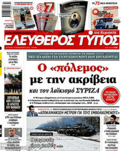 Κοινοποίηση Facebook Twitter LinkedIn Pinterest Email Copy Link Δείτε τα πρωτοσέλιδα των κυριακάτικων εφημερίδων Πρωτοσέλιδα