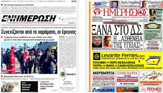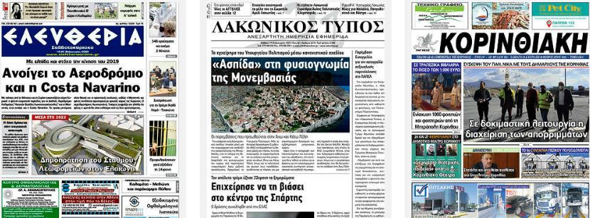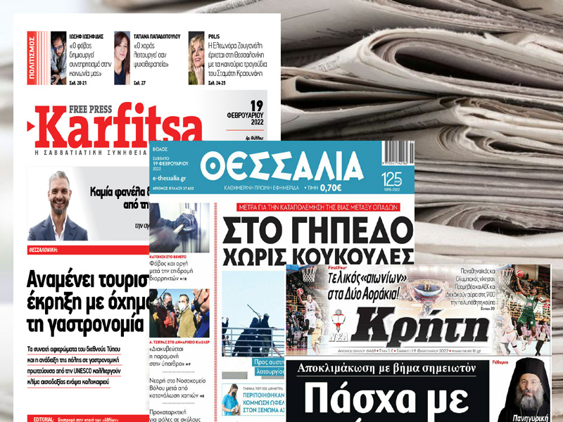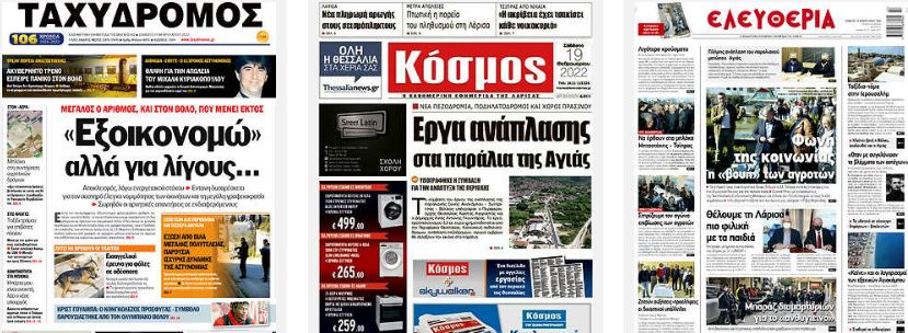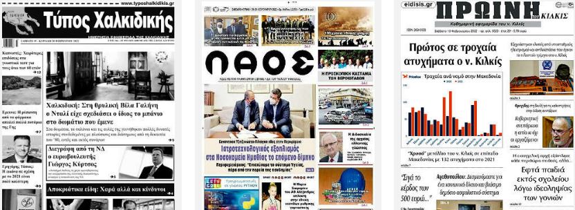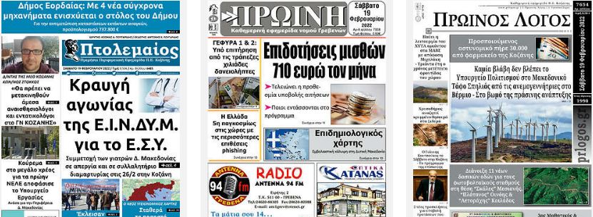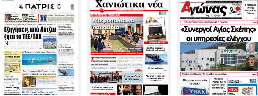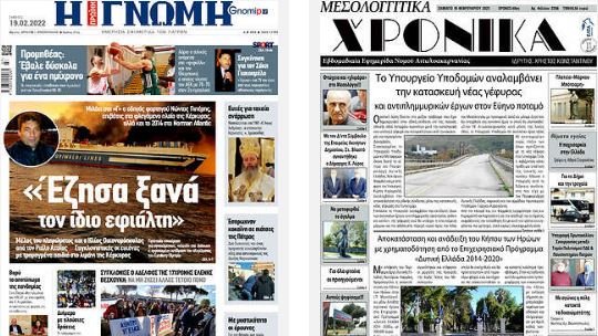 Κοινοποίηση Facebook Twitter LinkedIn Pinterest Email Copy Link Διαβάστε τα πρωτοσέλιδα των σημερινών τοπικών εφημερίδων πηγή frontpages.gr Πρωτοσέλιδα τοπικές εφημερίδες
