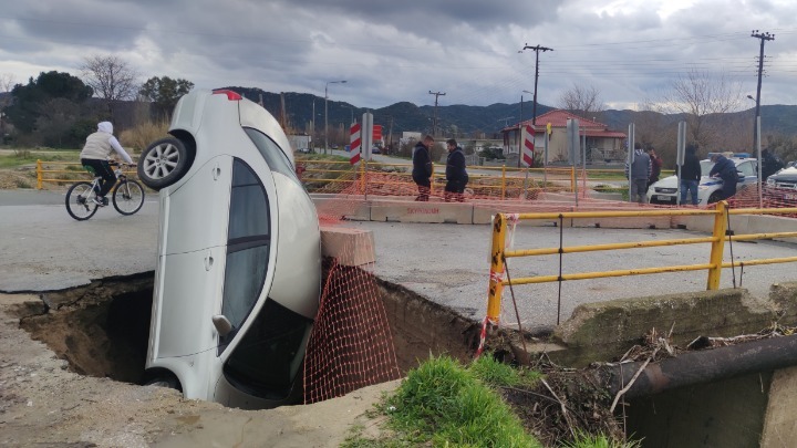 Η υποχώρηση εκτιμάται πως οφείλεται στις έντονες βροχοπτώσεις, ενώ το σημείο υποχώρησης βρίσκεται σε δρόμο δίπλα σε γέφυρα, η οποία είχε υποστεί σοβαρότατες ζημιές από παλαιότερη κακοκαιρία.