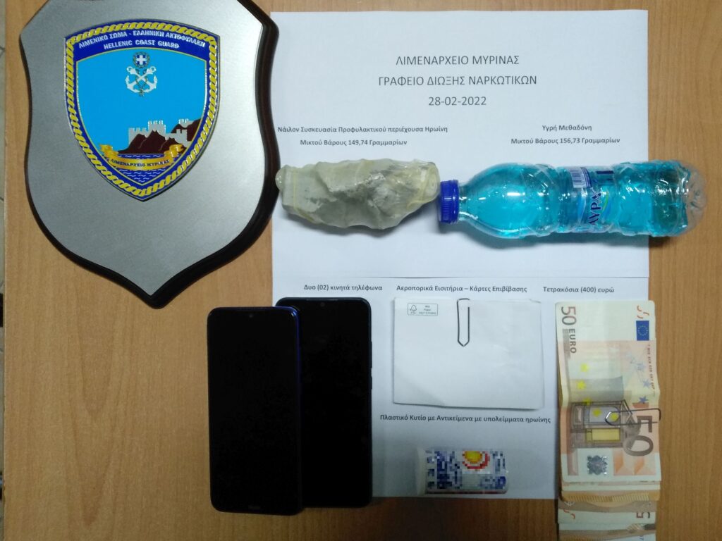 Ειδικότερα, κατόπιν αξιοποίησης πληροφοριών, εντοπίστηκαν οι εν λόγω ημεδαποί στον Κρατικό Επιβατικό Αερολιμένα Λήμνου, κατά την αποβίβασή τους από αεροπλάνο το οποίο προερχόταν από την Αθήνα. Αφού ακινητοποιήθηκαν από τα ανωτέρω στελέχη, στη συνέχεια οδηγήθηκαν στο Γενικό Νοσοκομείο – Κέντρο Υγείας Λήμνου όπου υποβλήθηκαν σε νομότυπη σωματική έρευνα και ιατρικές εξετάσεις-ακτινολογικό έλεγχο. Στην 39χρονη διενεργήθηκε σωματική έρευνα κατά την οποία βρέθηκε στην κατοχή της, επιμελώς κρυμμένη μία νάιλον διάφανη συσκευασία περιέχουσα ηρωίνη μεικτού βάρους 149,74 γρ, καθώς και μια (01) συσκευή κινητής τηλεφωνίας. Επίσης, εντοπίστηκαν σε κοινή τσάντα αποσκευών με τον 35χρονο ένα (01) πλαστικό κυτίο, περιέχον διάφορα πλαστικά αντικείμενα και βαμβάκια με υπολείμματα ηρωίνης, μη δυνάμενα να ζυγισθούν.