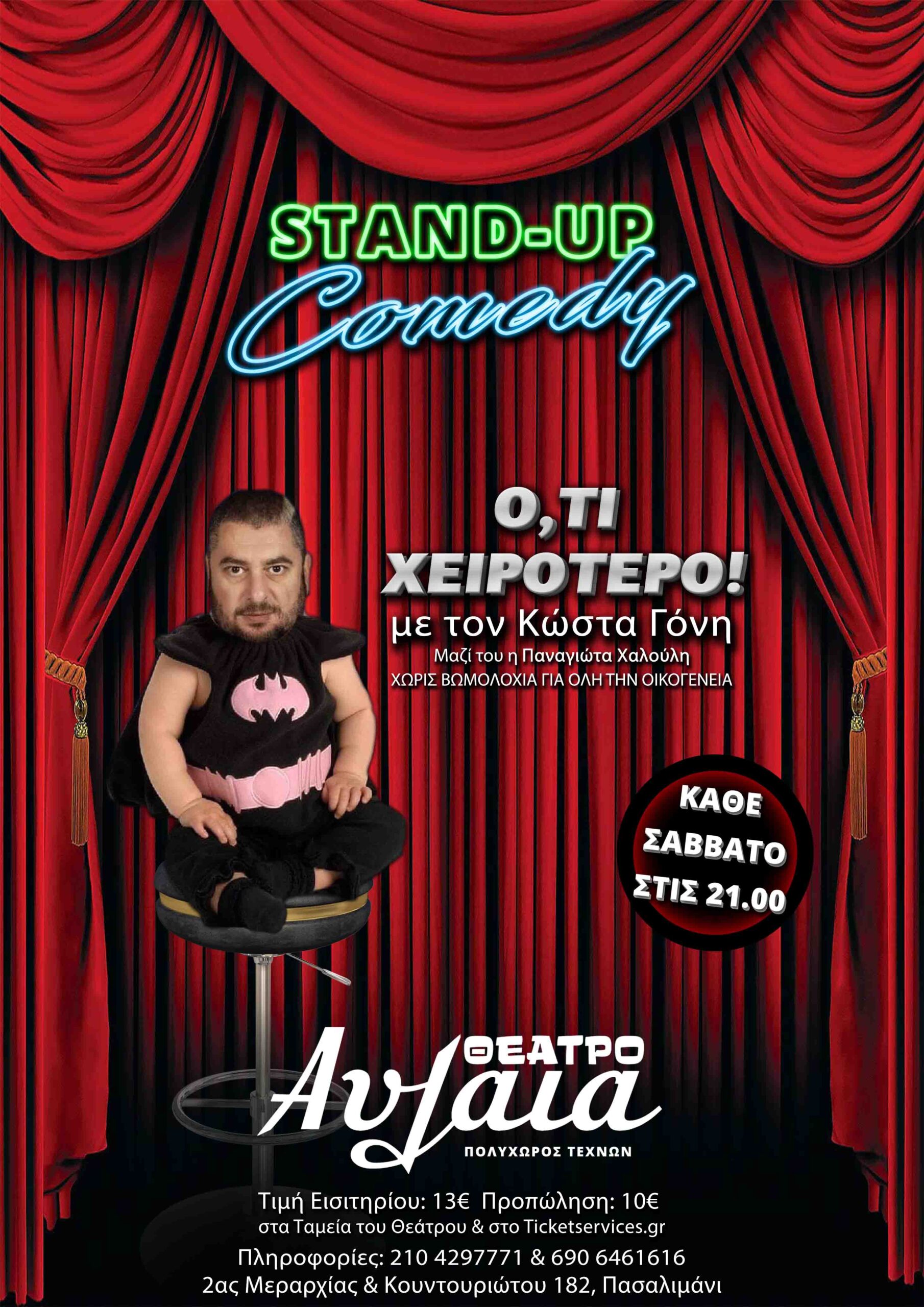 Πρεμιέρα αυτό το Σάββατο 19 Φεβρουαρίου για τον Stand-Up Comedian, Κώστα Γόνη στο “Θέατρο Αυλαία – Πολυχώρος Τεχνών”