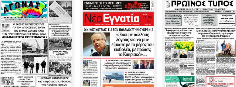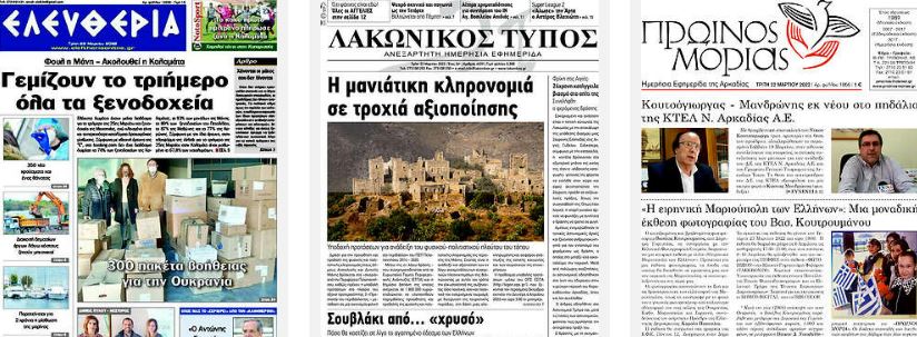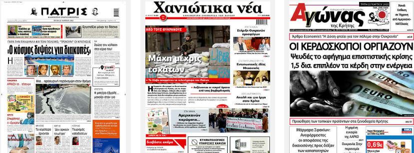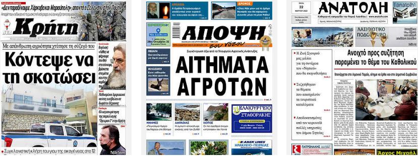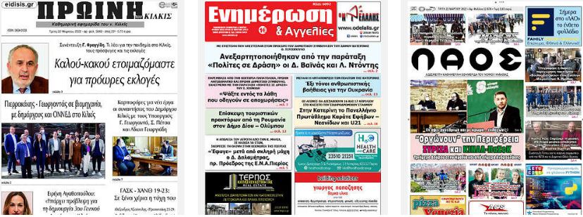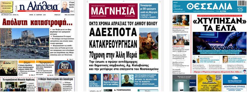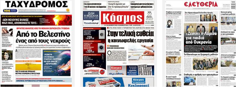 Κοινοποίηση Facebook Twitter LinkedIn Pinterest Email Copy Link Διαβάστε τα πρωτοσέλιδα των σημερινών τοπικών εφημερίδων πηγή frontpages.gr Πρωτοσέλιδα τοπικές εφημερίδες