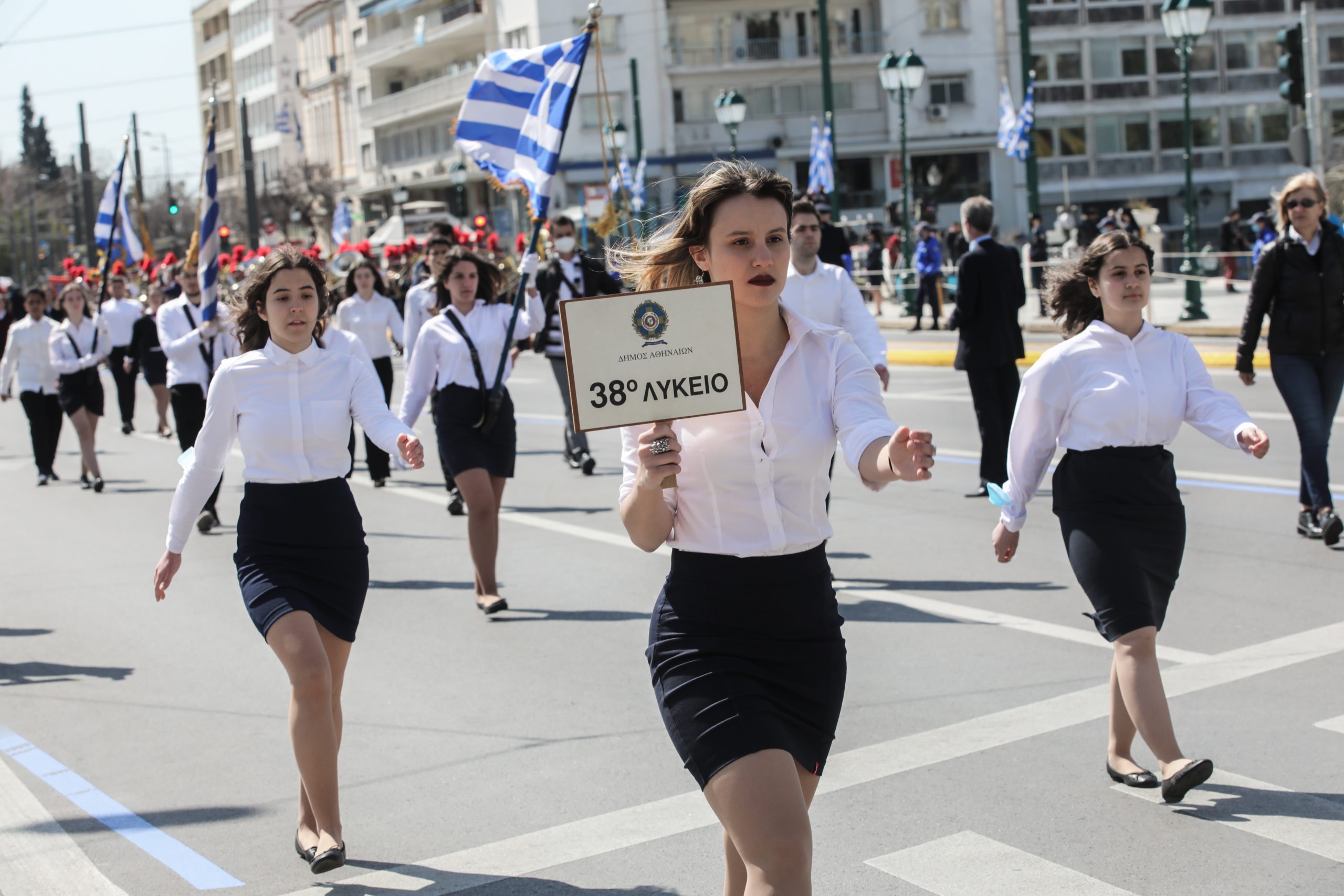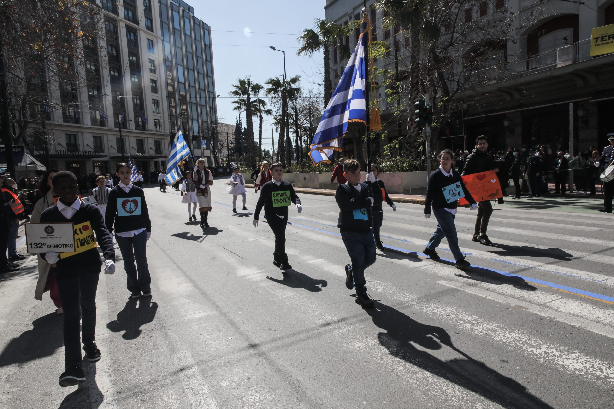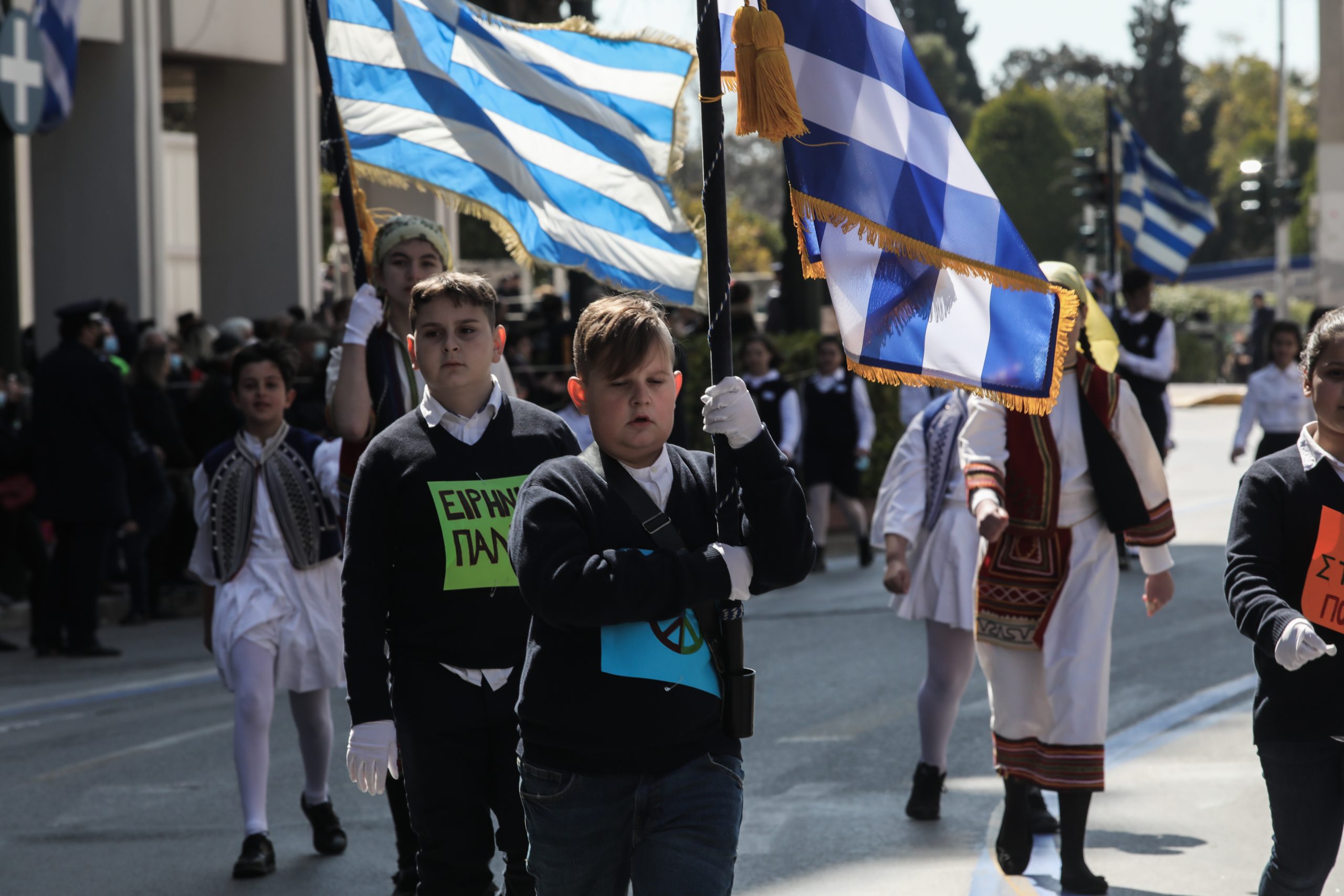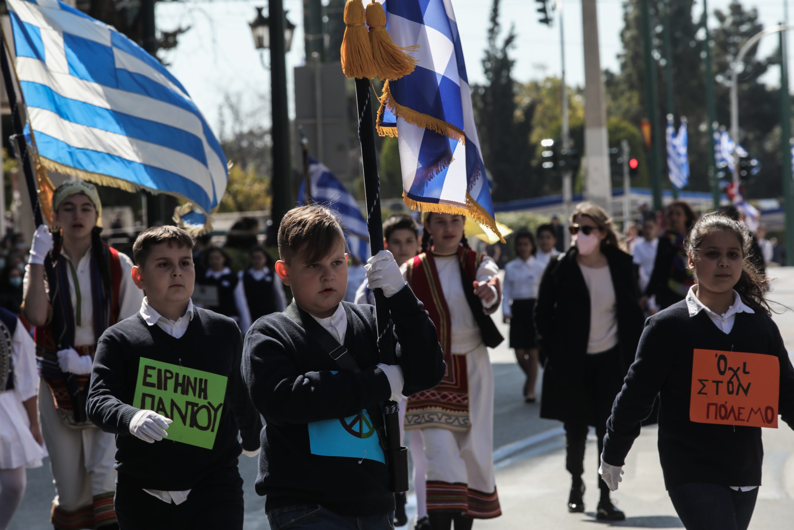 Χωρίς την παρουσία πολύ κόσμου, εξαιτίας της πανδημίας και με αντιπολεμικά μηνύματα πραγματοποιήθηκε η μαθητική παρέλαση για την επέτειο της 25ης Μαρτίου στην Αθήνα.