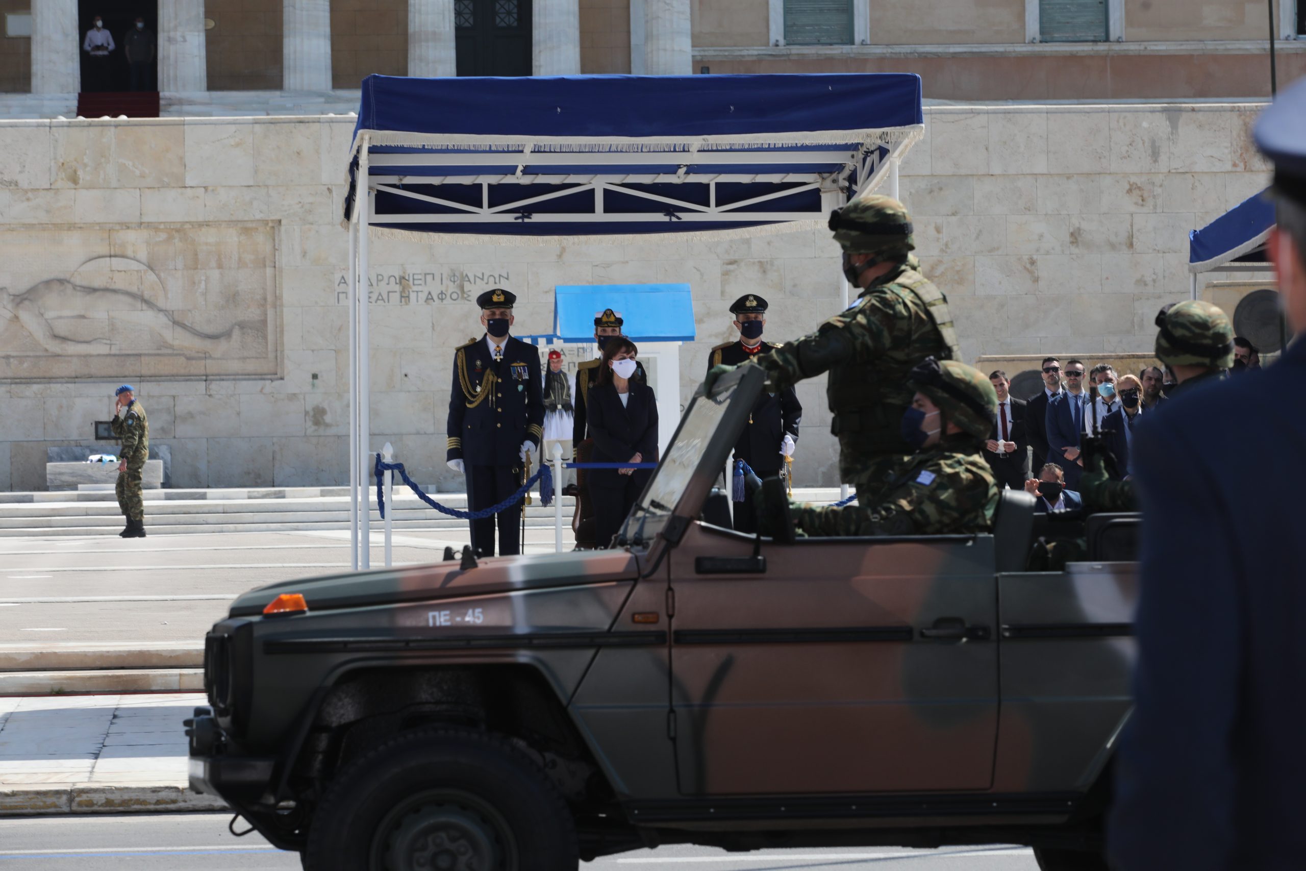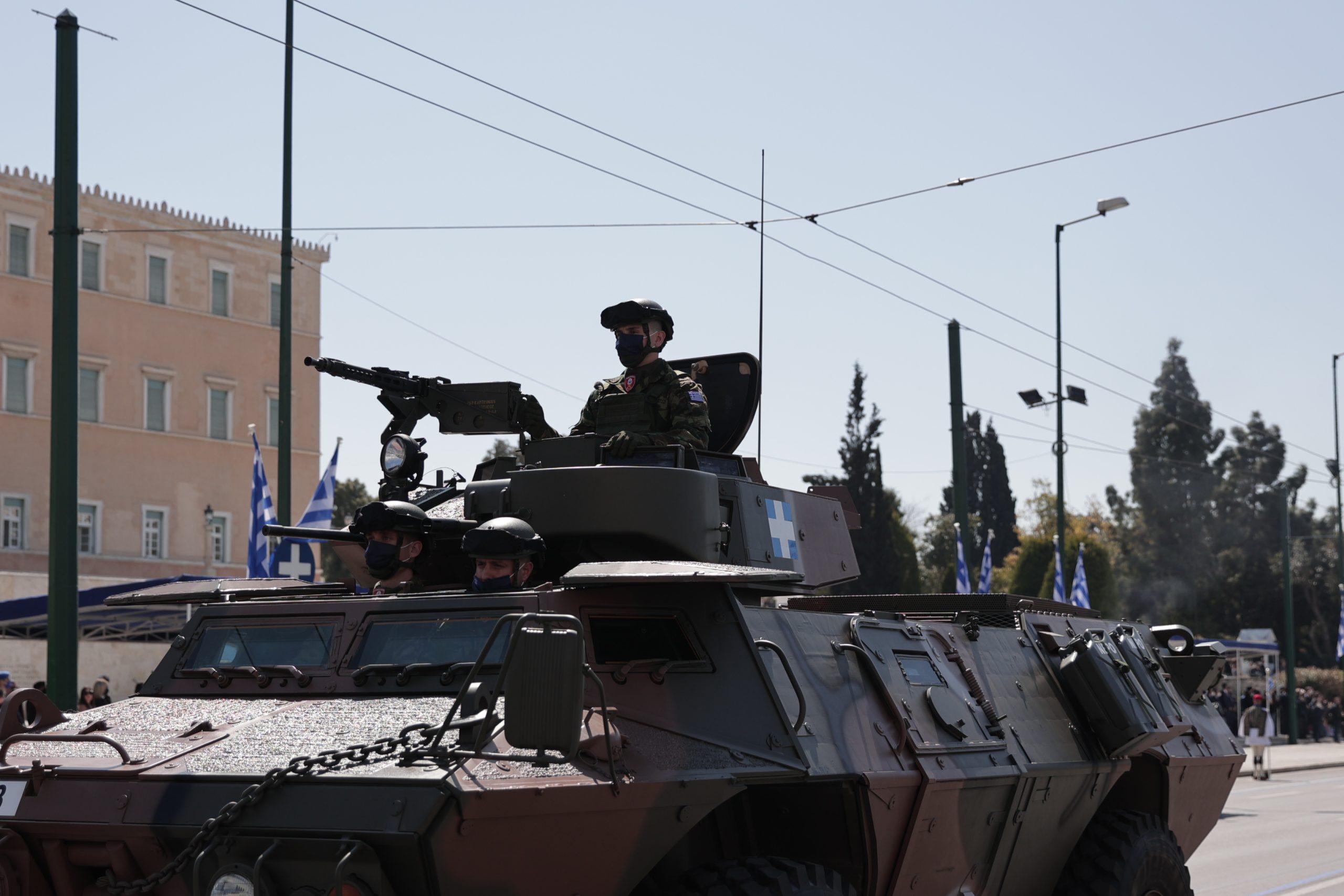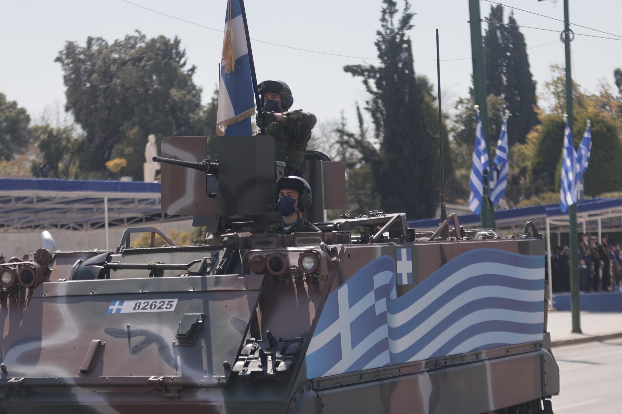 Απο την παρέλαση δεν έλειπαν και τα επίσης νεοαποκτηθέντα θωρακισμένα οχήματα M1117 Guardian που προμηθεύεται ο Στρατός Ξηράς από τις ΗΠΑ ενώ συμμετέχουν και γαλλικά Rafale για δεύτερη χρονιά.