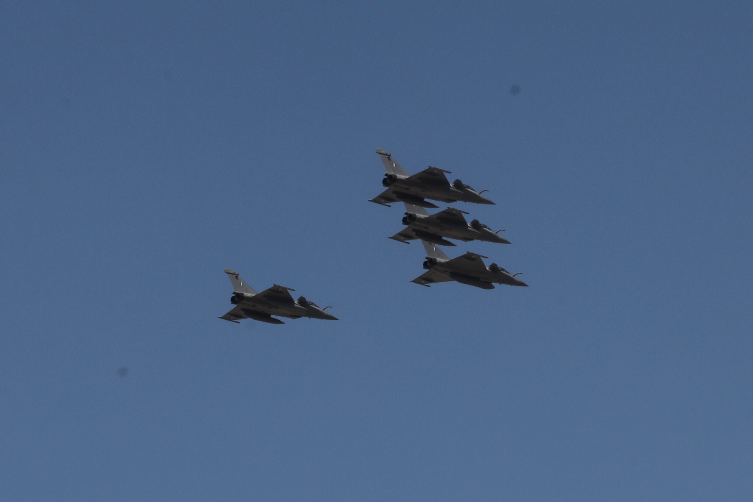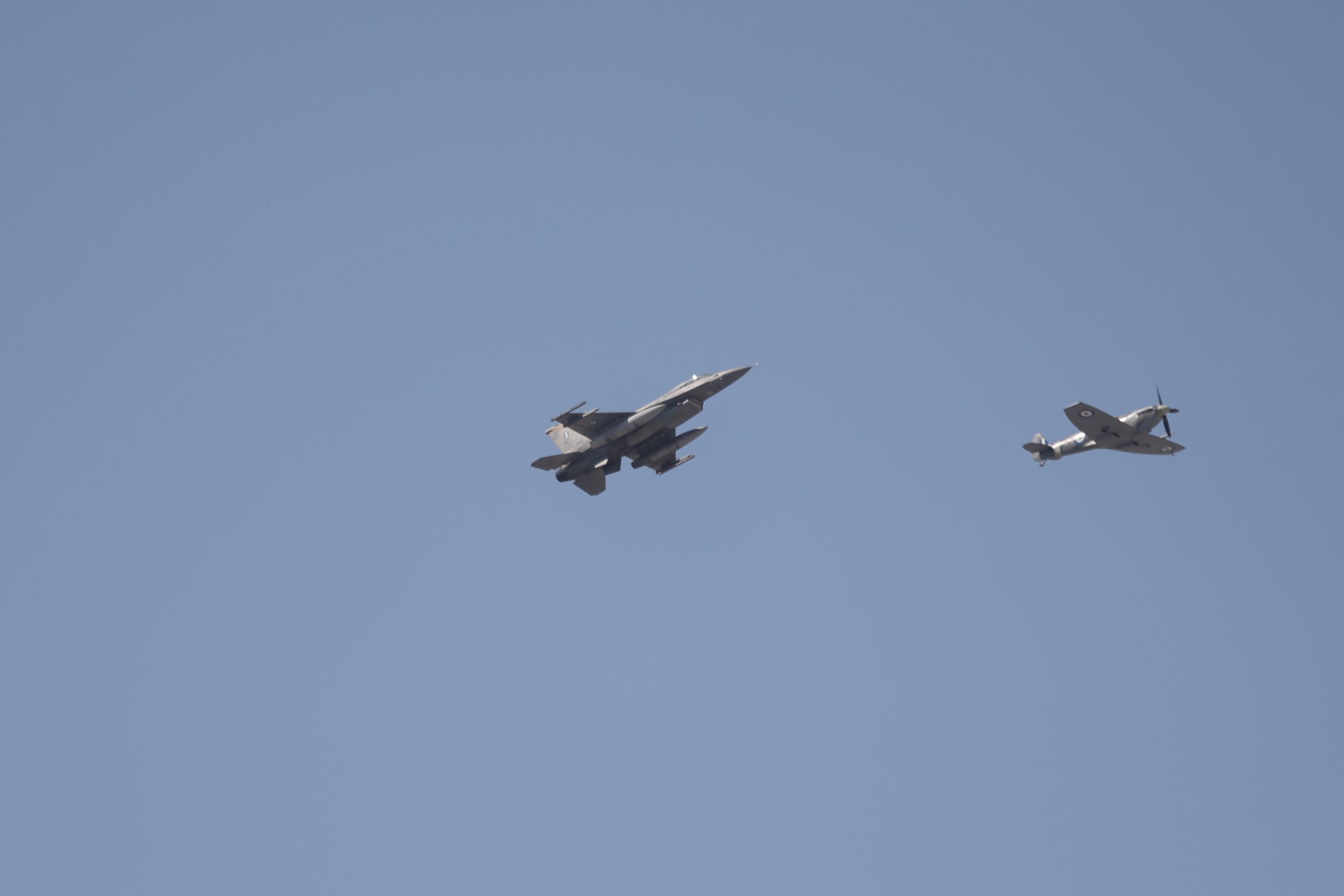 Για πρώτη φορά πέταξαν πάνω από τον αττικό ουρανό τα προσφάτως ενταχθέντα στην Πολεμική Αεροπορία ελληνικά Rafale, όπως πετάξει και το θρυλικό αεροσκάφος Supermarine SPITFIRE MJ755.