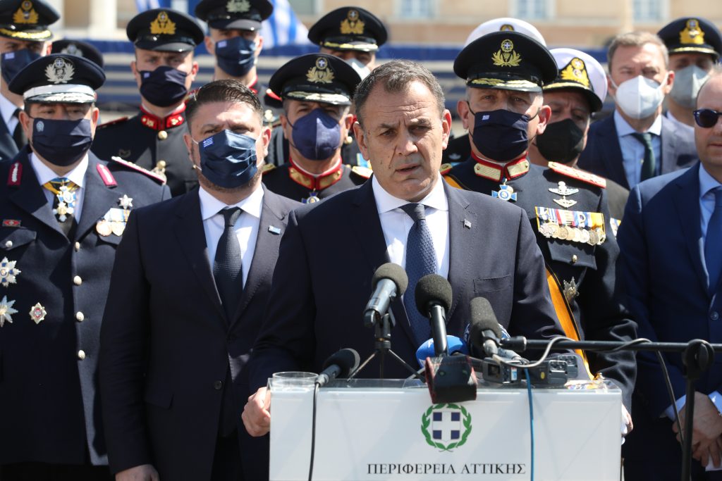 Να αντλήσουμε δύναμη και έμπνευση από το παράδειγμα των αγωνιστών του ’21. Οφείλουμε να παλέψουμε και να υπερνικήσουμε τις προκλήσεις μαζί με τους συμμάχους μας. Οφείλουμε να αντέξουμε γιατί είμαστε Έλληνες. Αυτό τόνισε ο υπουργός Εθνικής ‘Αμυνας Νίκος Παναγιωτόπουλος, μετά το τέλος της παρέλασης της 25ης Μαρτίου. «Γιορτάζουμε», είπε, «με μεγάλη λαμπρότητα τη διπλή εορτή του Ευαγγελισμού της Θεοτόκου και τη μεγάλη Εθνική μας εορτή». «Τιμούμε», συνέχισε, «τη μνήμη αυτών που αγωνίστηκαν, πολέμησαν και θυσιάστηκαν για να είναι η Ελλάδα ελεύθερη, ανεξάρτητη και κυρίαρχη».