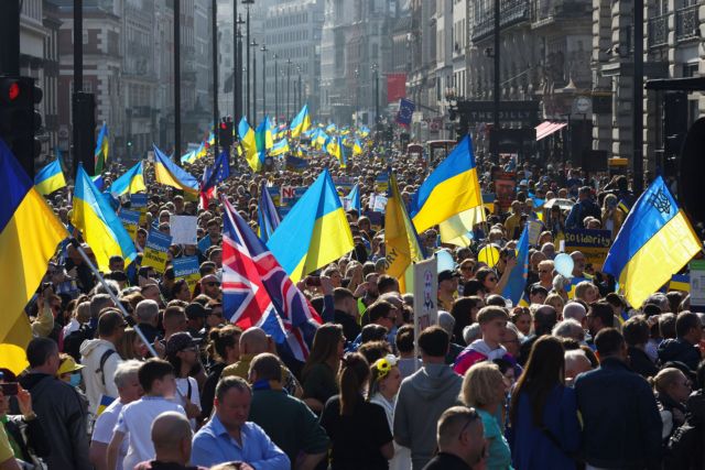 Χιλιάδες άνθρωποι διαδήλωσαν σήμερα στο Λονδίνο για να στηρίξουν τους Ουκρανούς, έναν μήνα μετά την εισβολή στη χώρα τους από τη Ρωσία, με τον δήμαρχο της βρετανικής πρωτεύουσας να ασκεί κριτική στις ενέργειες της κυβέρνησης προς τους πρόσφυγες.