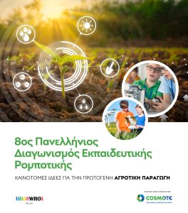 Για όγδοη χρονιά πραγματοποιείται ο Πανελλήνιος Διαγωνισμός Εκπαιδευτικής Ρομποτικής από τον Μη Κερδοσκοπικό Οργανισμό Εκπαιδευτικής Ρομποτικής και Επιστήμης WRO Hellas, με στρατηγικό συνεργάτη την COSMOTE. Κάθε χρόνο χιλιάδες μαθητές και μαθήτριες της πρωτοβάθμιας και δευτεροβάθμιας εκπαίδευσης παρουσιάζουν καινοτόμες τεχνολογικές λύσεις για διαφορετικούς τομείς της κοινωνίας και της οικονομίας, αναπτύσσοντας STEM δεξιότητες. Στον φετινό διαγωνισμό οι μαθητές προετοιμάζουν έξυπνες τεχνολογικές εφαρμογές για τον πρωτογενή τομέα και την αγροτική παραγωγή. Oι δηλώσεις συμμετοχής γίνονται online.