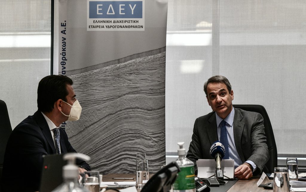 Νομοθετικές πρωτοβουλίες για επιτάχυνση των ερευνών για υδρογονάνθρακες αναλαμβάνει το υπουργείο Περιβάλλοντος και Ενέργειας, όπως επεσήμανε ο αρμόδιος υπουργός, Κώστας Σκρέκας, στο πλαίσιο της σύσκεψης που πραγματοποιήθηκε σήμερα υπό τον πρωθυπουργό, Κυριάκο Μητσοτάκη, στην Ελληνική Διαχειριστική Εταιρεία Υδρογονανθράκων για τη διερεύνηση και αξιοποίηση των εγχώριων κοιτασμάτων.