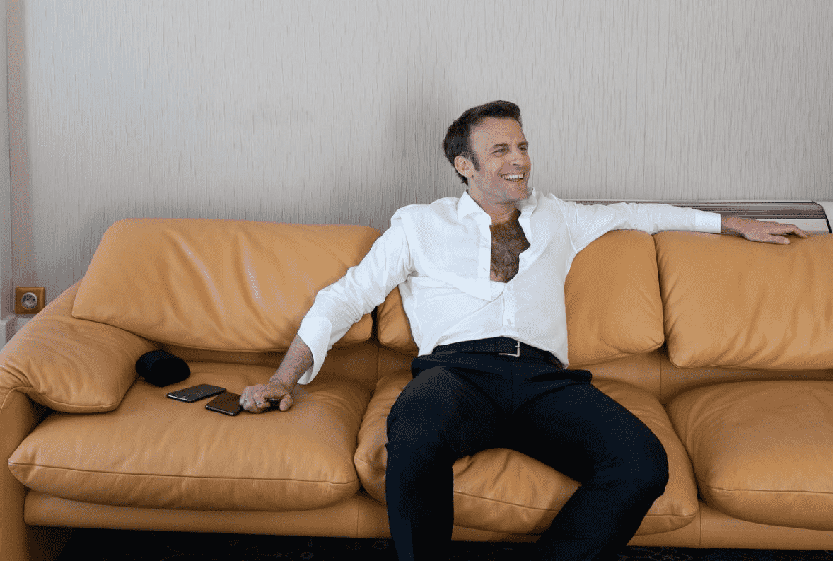 Η προσωπική φωτογράφος του Εμανουέλ Μακρόν ανέβασε στο Instagram μια σειρά φωτογραφιών του, από την προεκλογική του εκστρατεία, άλλες από τη σκηνή ομιλιών του, άλλες όπως ανεβαίνει, άλλες όπως ετοιμάζεται, αλλά και μία που ποζάρει στον καναπέ, με ανοιχτό το πουκάμισό του.