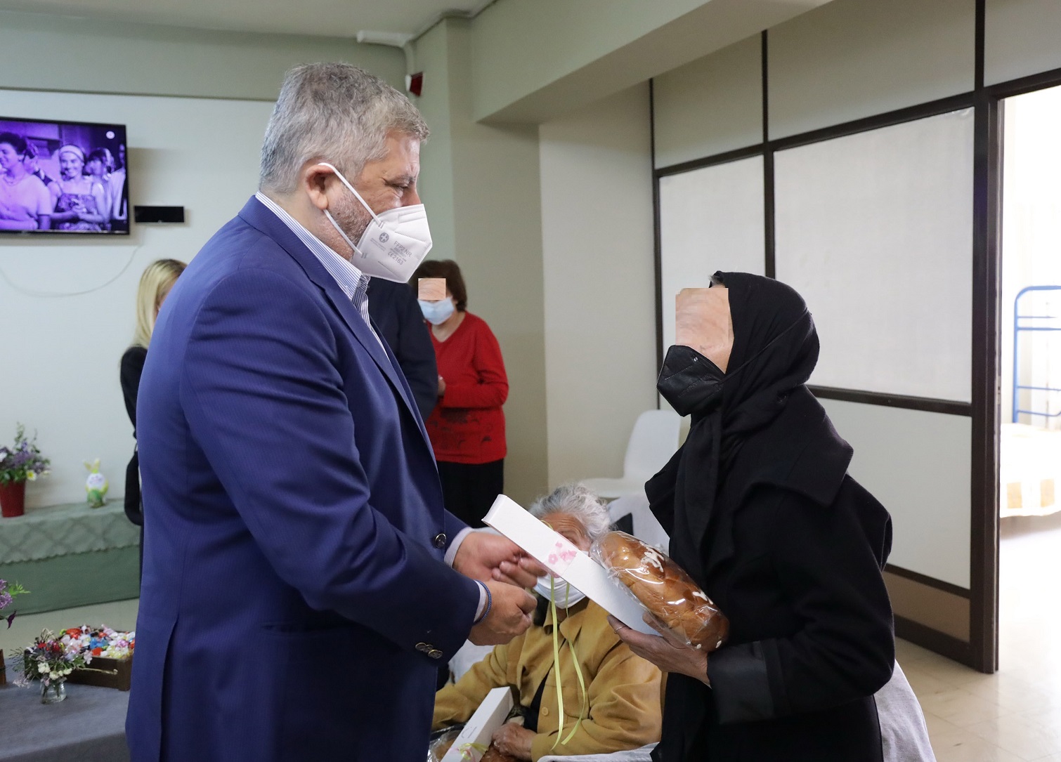 Στη συνέχεια ο κ. Πατούλης ξεναγήθηκε στους χώρους της Δομής, όπου αυτή την περίοδο φιλοξενούνται 37 άτομακαι είχε την ευκαιρία να συνομιλήσει με γυναίκες-ωφελούμενες να τις προσφέρει δώρα αλλά και να ανταλλάξει Πασχαλινές ευχές.
