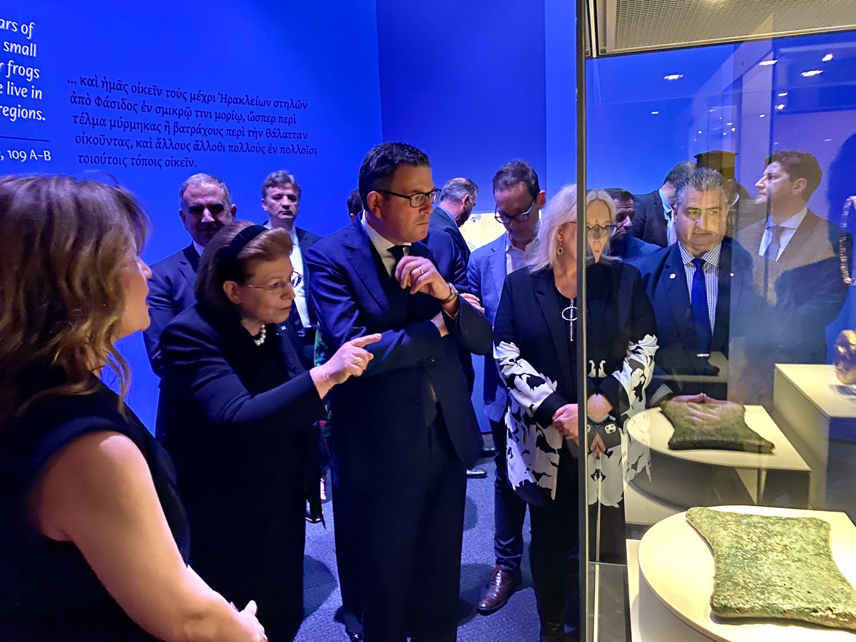 Η έκθεση «Ανοιχτοί Ορίζοντες-Αρχαία Ελληνικά Ταξίδια και Επαφές», αποτέλεσμα συνεργασίας του Εθνικού Αρχαιολογικού Μουσείου και του Μουσείου της Μελβούρνης, εγκαινιάστηκε παρουσία του πρωθυπουργού της Πολιτείας της Βικτώριας, Daniel Andrews, του αρχιεπισκόπου Αυστραλίας, Μακάριου, της υπουργού Πολιτισμού και Αθλητισμού, Λίνας Μενδώνη, των υπουργών Danny Pearson και Ros Spence, ομογενών βουλευτών και πλήθους κόσμου.