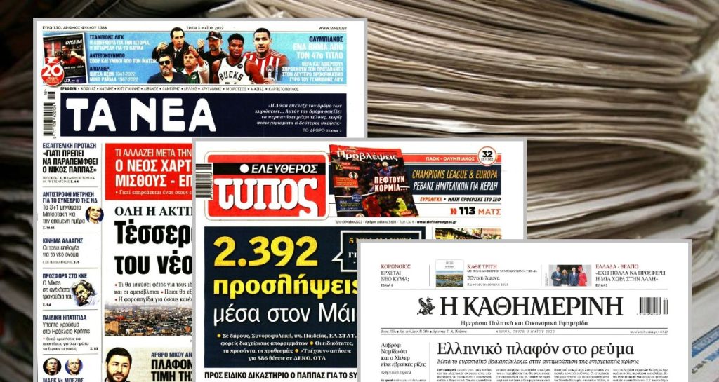Κοινοποίηση Facebook Twitter LinkedIn Pinterest Email Copy Link Διαβάστε τα πρωτοσέλιδα των σημερινών εφημερίδων Εφημερίδες Πρωτοσέλιδα