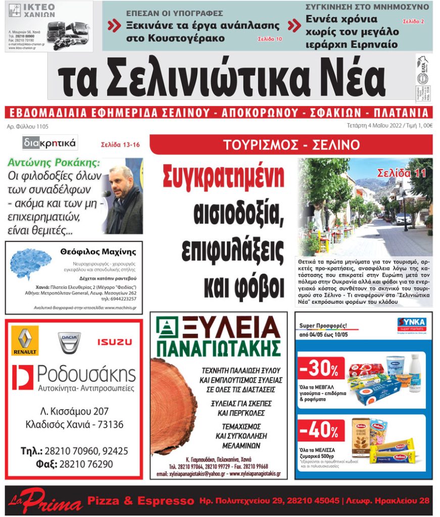 Κοινοποίηση Facebook Twitter LinkedIn Pinterest Email Copy Link Δείτε το πρωτοσέλιδο της τοπικής εφημερίδας “Σελινιώτικα Νέα” Σελινιώτικα Νέα