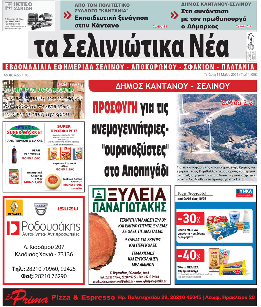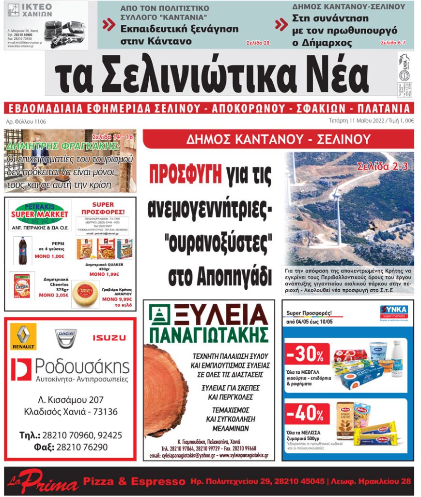 Κοινοποίηση Facebook Twitter LinkedIn Pinterest Email Copy Link Δείτε το πρωτοσέλιδο της τοπικής εφημερίδας “Σελινιώτικα Νέα” "Σελινιώτικα Νέα"