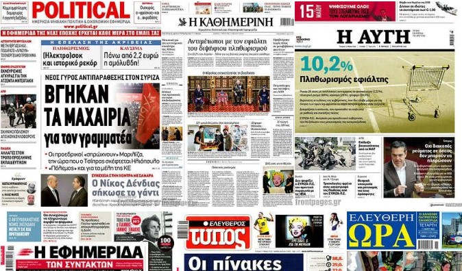Κοινοποίηση Facebook Twitter LinkedIn Pinterest Email Copy Link Δείτε τα πρωτοσέλιδα των σημερινών εφημερίδων Πρωτοσέλιδα