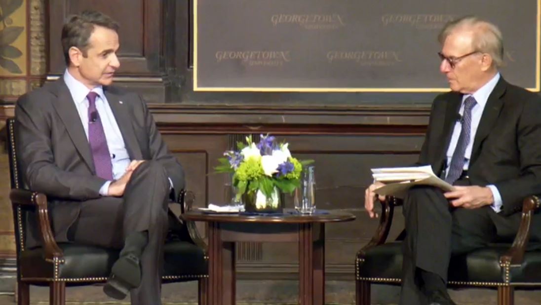 Ολοκληρώθηκε η ανοιχτή συζήτηση του πρωθυπουργού Κυριάκου Μητσοτάκη με συνομιλητή τον δημοσιογράφο Ντέιβιντ Ιγκνάτιους της The Washington Post, στο Πανεπιστήμιο Georgetown University.