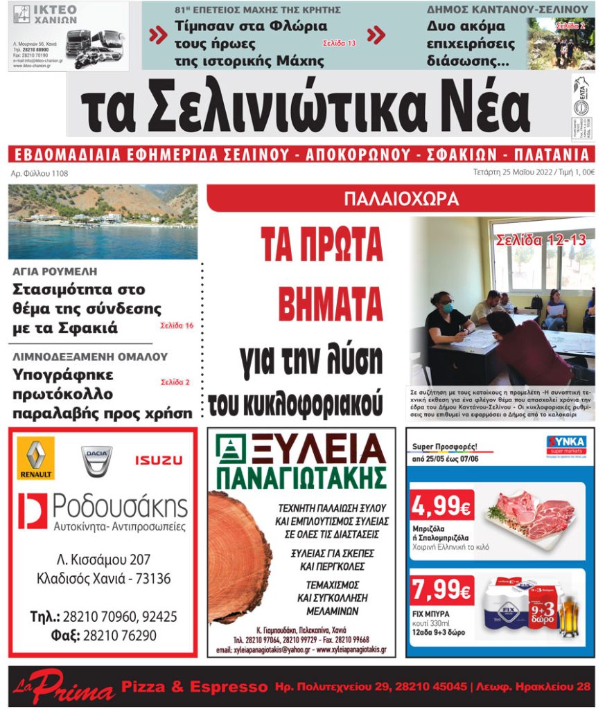 Κοινοποίηση Facebook Twitter LinkedIn Pinterest Email Copy Link Δείτε το πρωτοσέλιδο της τοπικής εφημερίδας “Σελινιώτικα Νέα” "Σελινιώτικα Νέα"